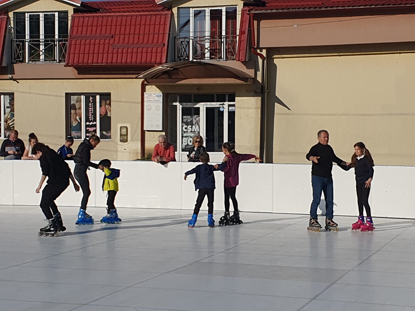 FOTO/VIDEO Chicoteli, zâmbete și voie bună! Copiii alături de părinți au testat patinoarul sintetic