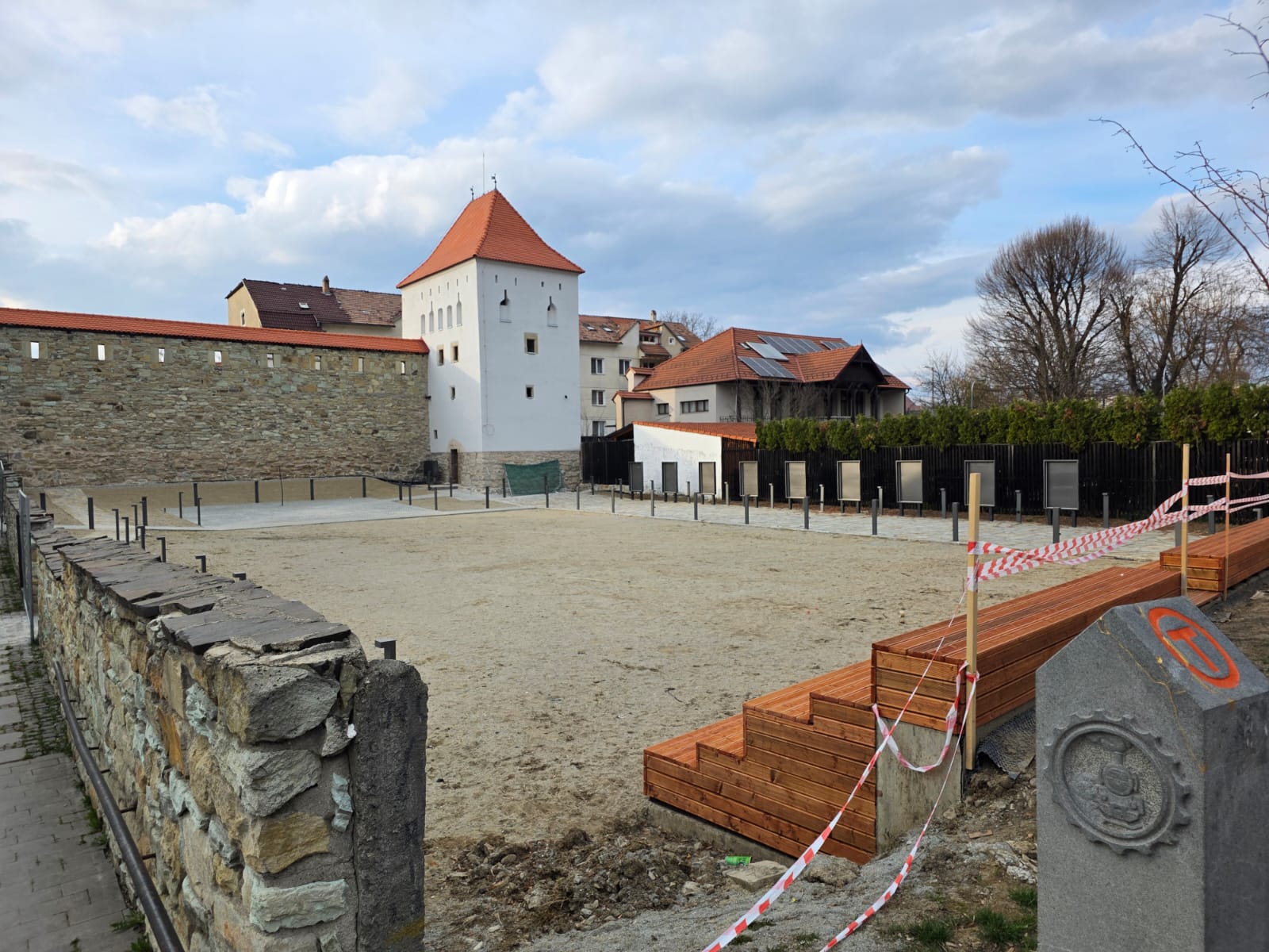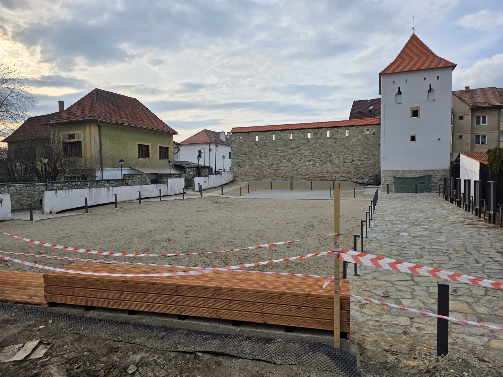 Un amplu proiect de reabilitare a zidului Cetății Bistrița și a Turnului Dogarilor se apropie de sfârșit. CUM arată zona unde se vor organiza pe viitor evenimente în aer liber: