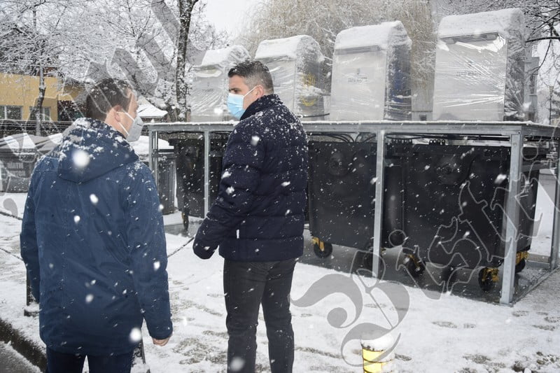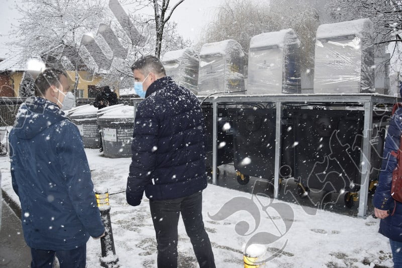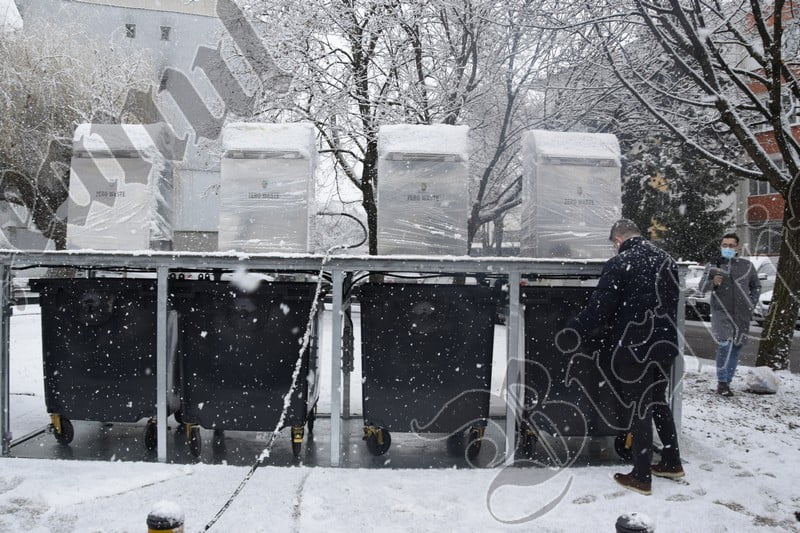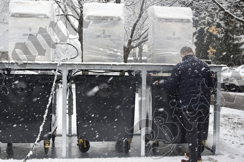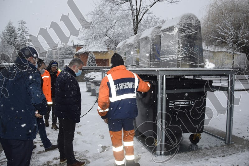 În această dimineață, edilul a făcut o demonstrație a modului de funcționare a platformei cu tomberoane îngropate.
