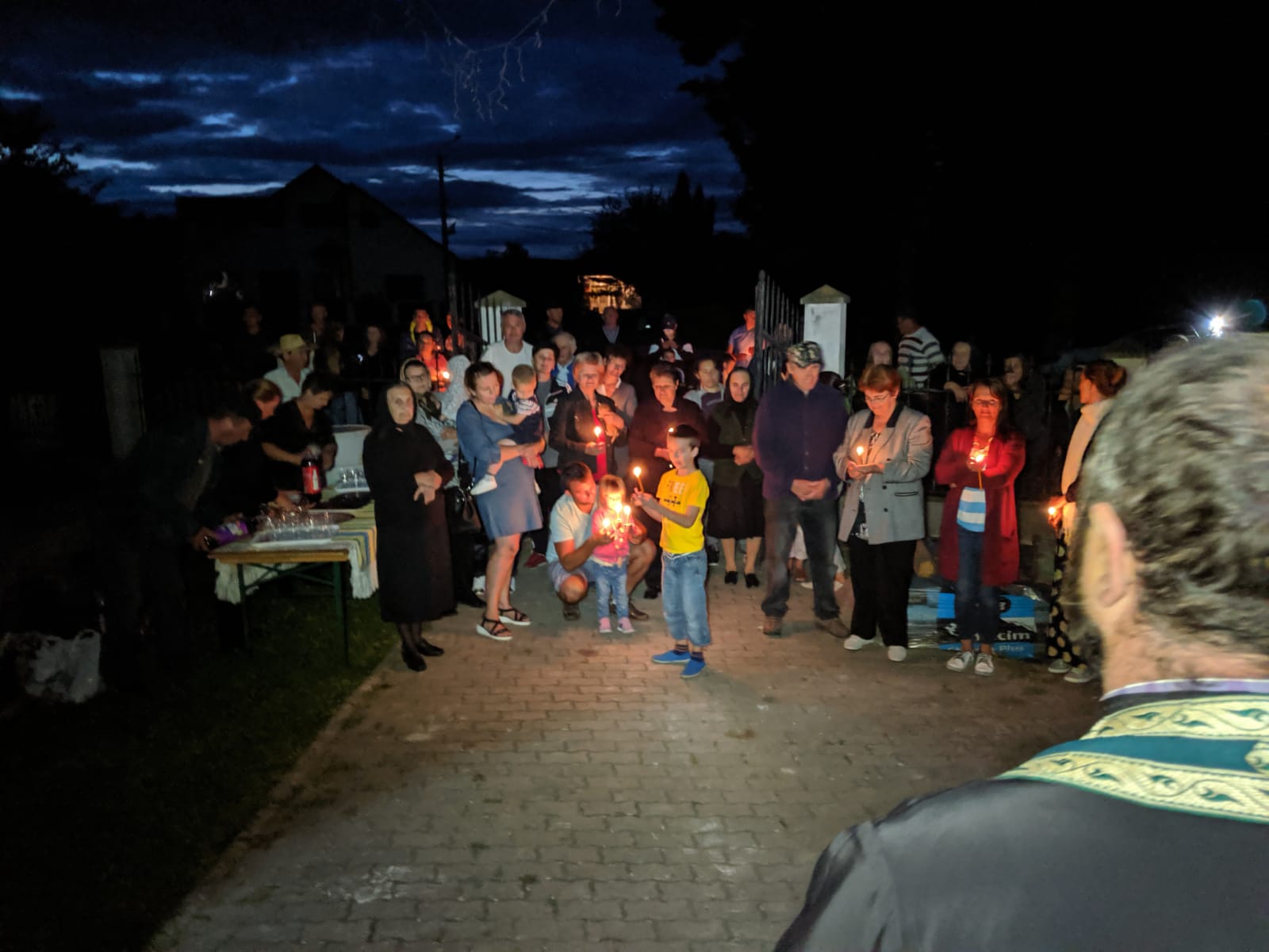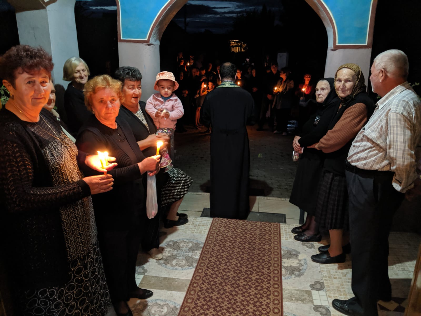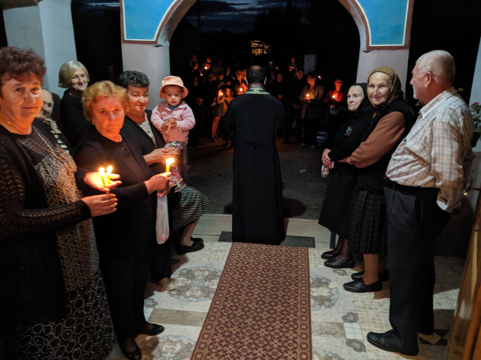 La întoarcere, pelerinii au fost așteptați în capătul satului de localnici. Una dintre ulițele satului a fost parcursă cu lumânări aprinse și cu cântece vechi dedicate Maicii Domnului. La biserică, pelerinii au fost așteptați de preot, care a spus câteva rugăciuni de binecuvântare.