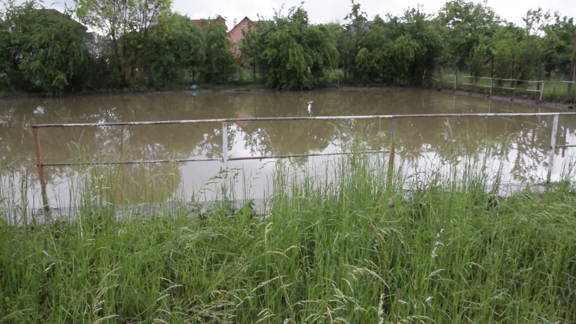 FOTO/VIDEO : De râsu`-plânsu`. Cum a ajuns un bazin care a fost gândit să împiedice inundațiile să inunde o zonă rezidențială