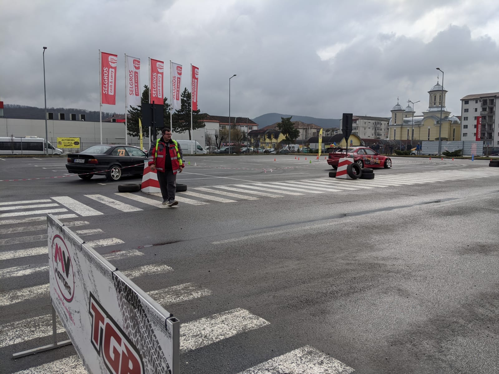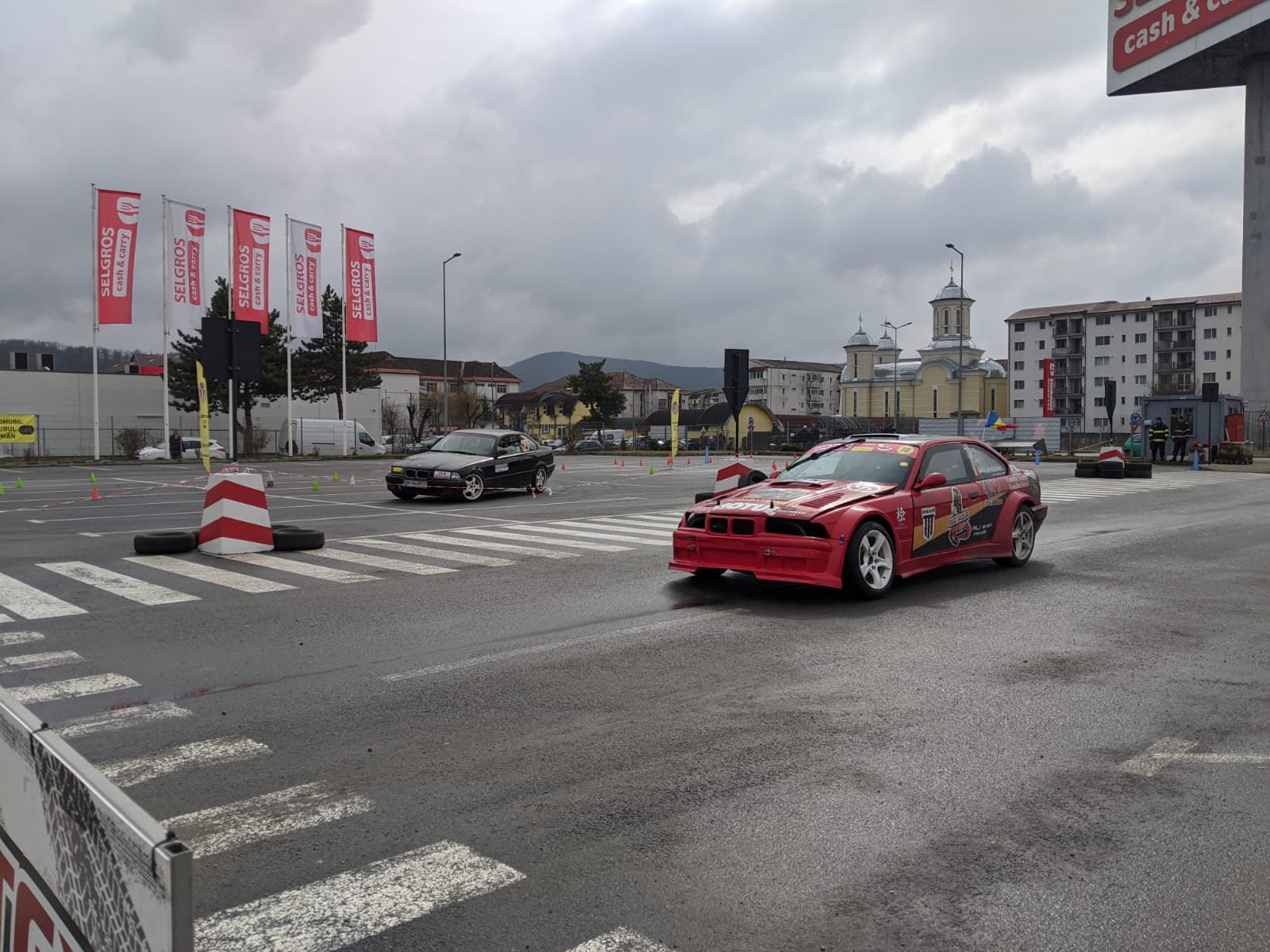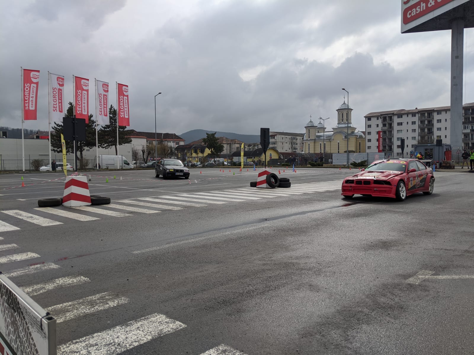 Parcarea de la Selgros a răsunat azi de motoare ambalate și scârțâit de roți.