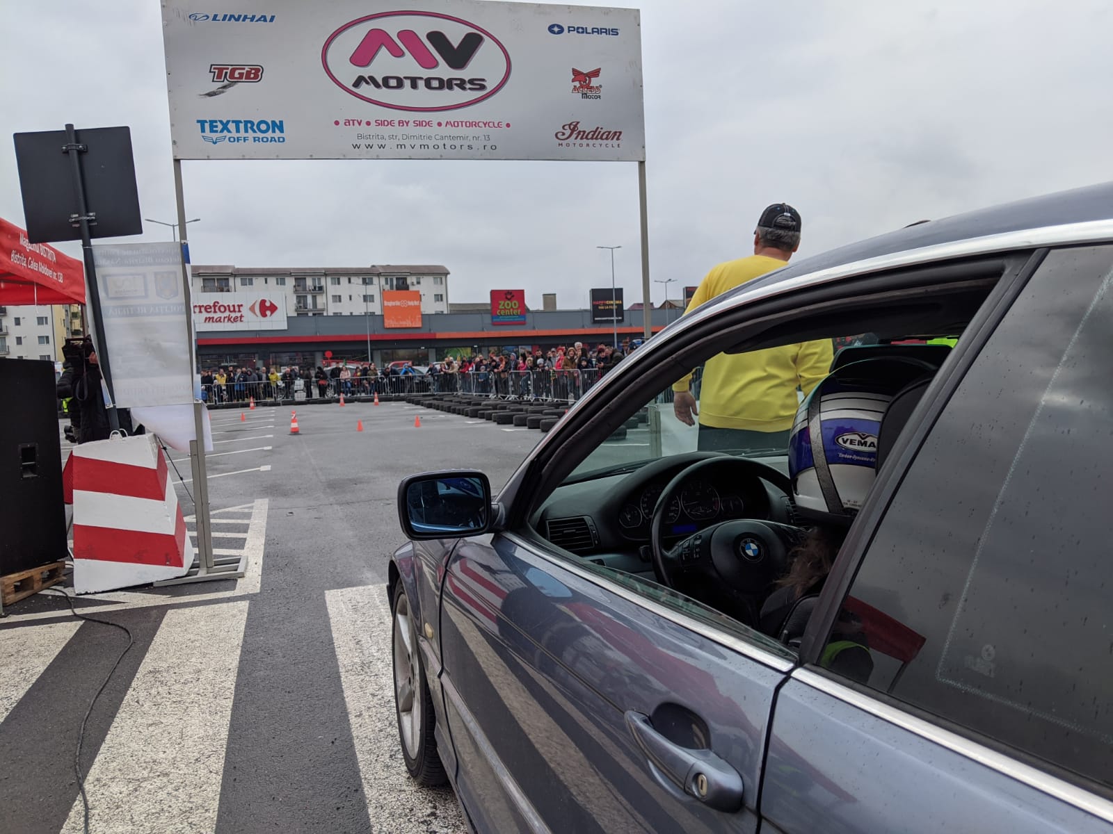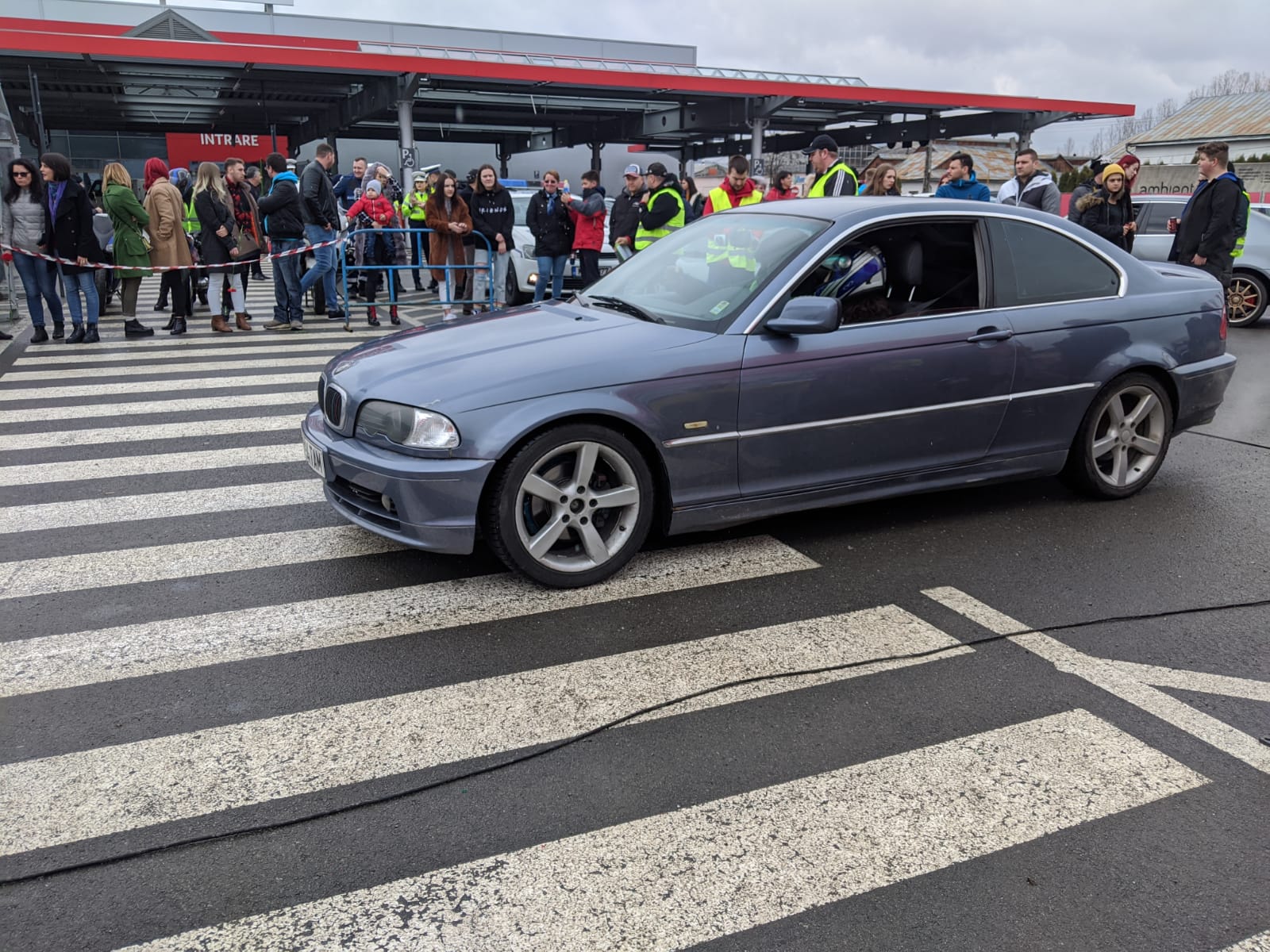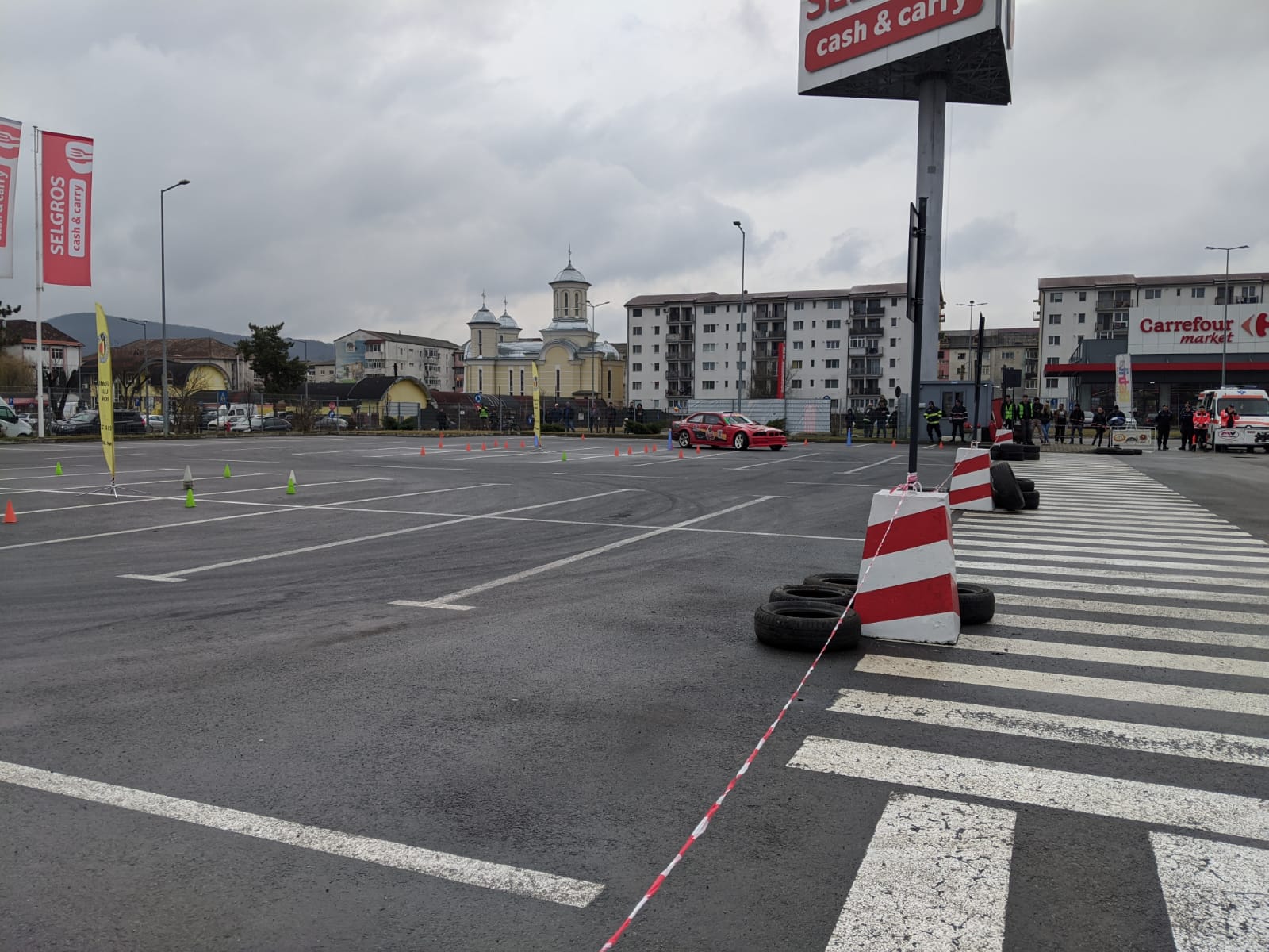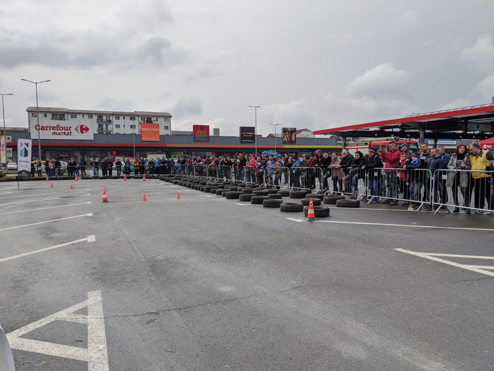 Parcarea de la Selgros a răsunat azi de motoare ambalate și scârțâit de roți.