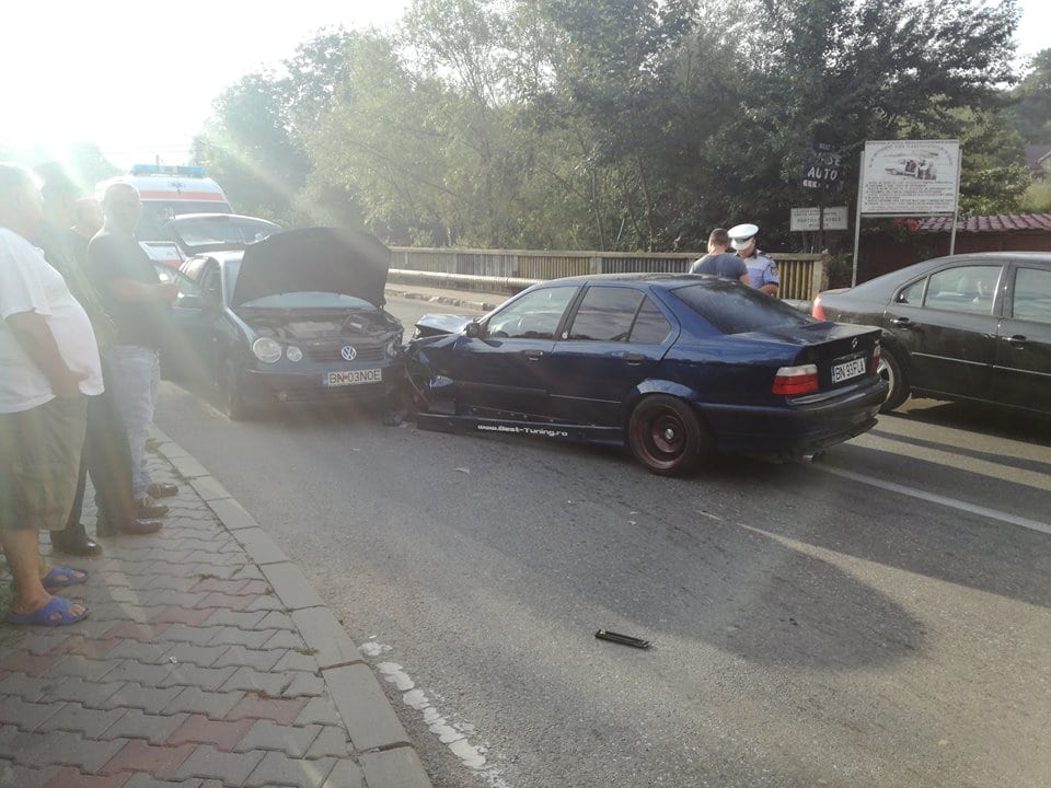 Conducătorul auto care voia să facă stânga pe pod a demarat în trombă, a pierdut controlul volanului și s-a ciocnit cu autoturismul de pe pod. Din fericire, în urma impactului, nimeni nu a fost rănit.