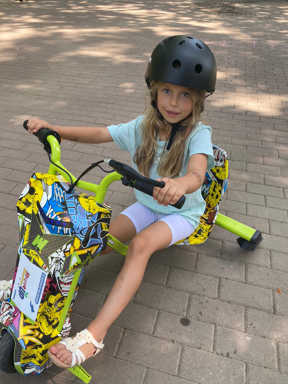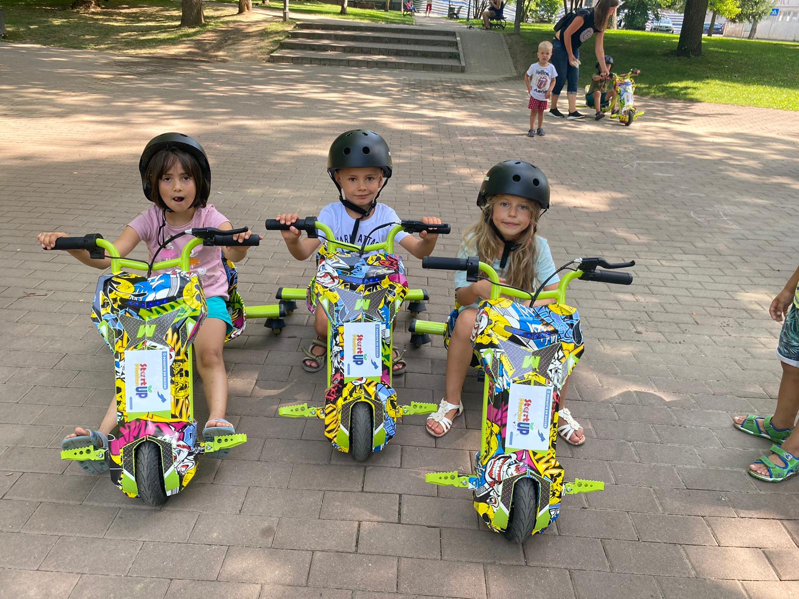Oana are și două „ajutoare” de nădejde: cei doi copilași de 3 ani și jumătate și respectiv 7 ani. Dacă fetița de trei ani și jumătate a testat până acum doar karturile, băiatul cunoaște în detaliu toate echipamentele și le-a încercat pe toate, mai puțin scuterele.