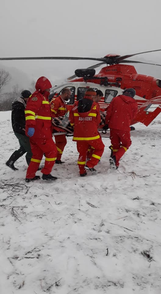 Pentru preluarea bărbatului de aproximativ 57 de ani a fost chemat și elicopterul SMURD, care va ateriza pe terenul de fotbal din Romuli.