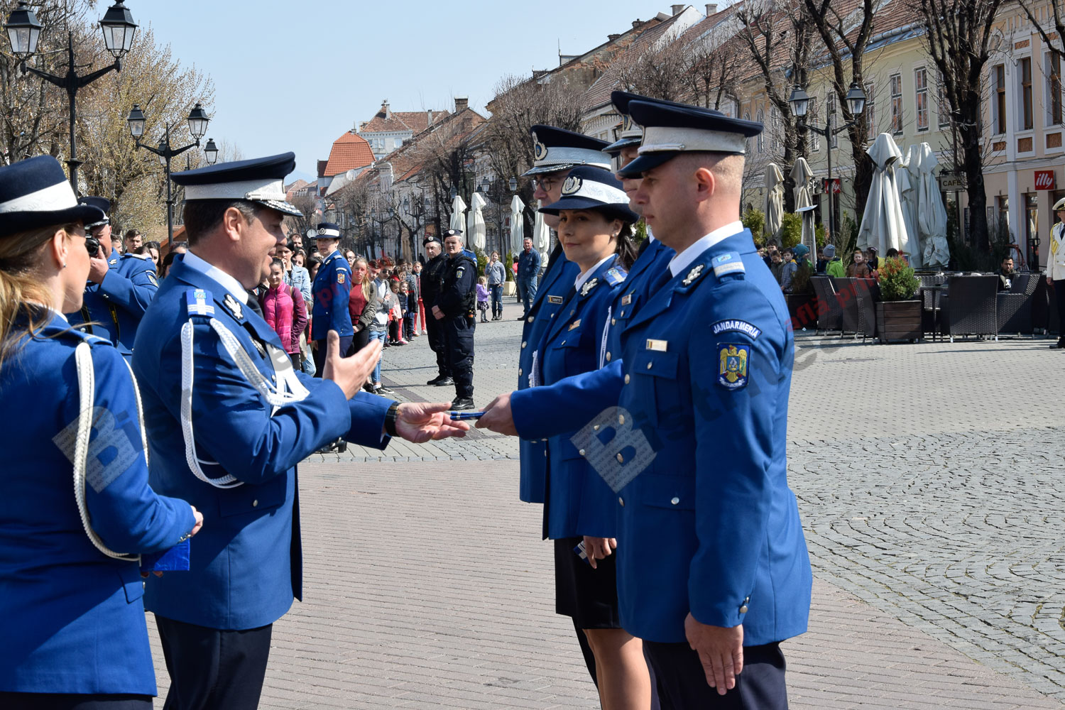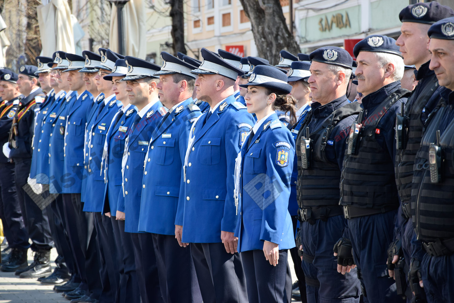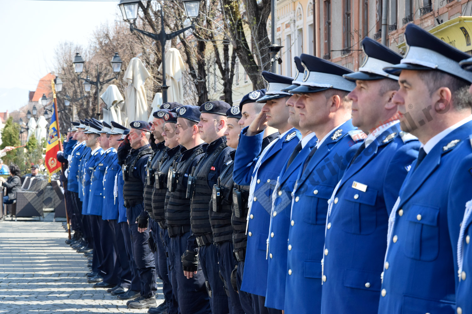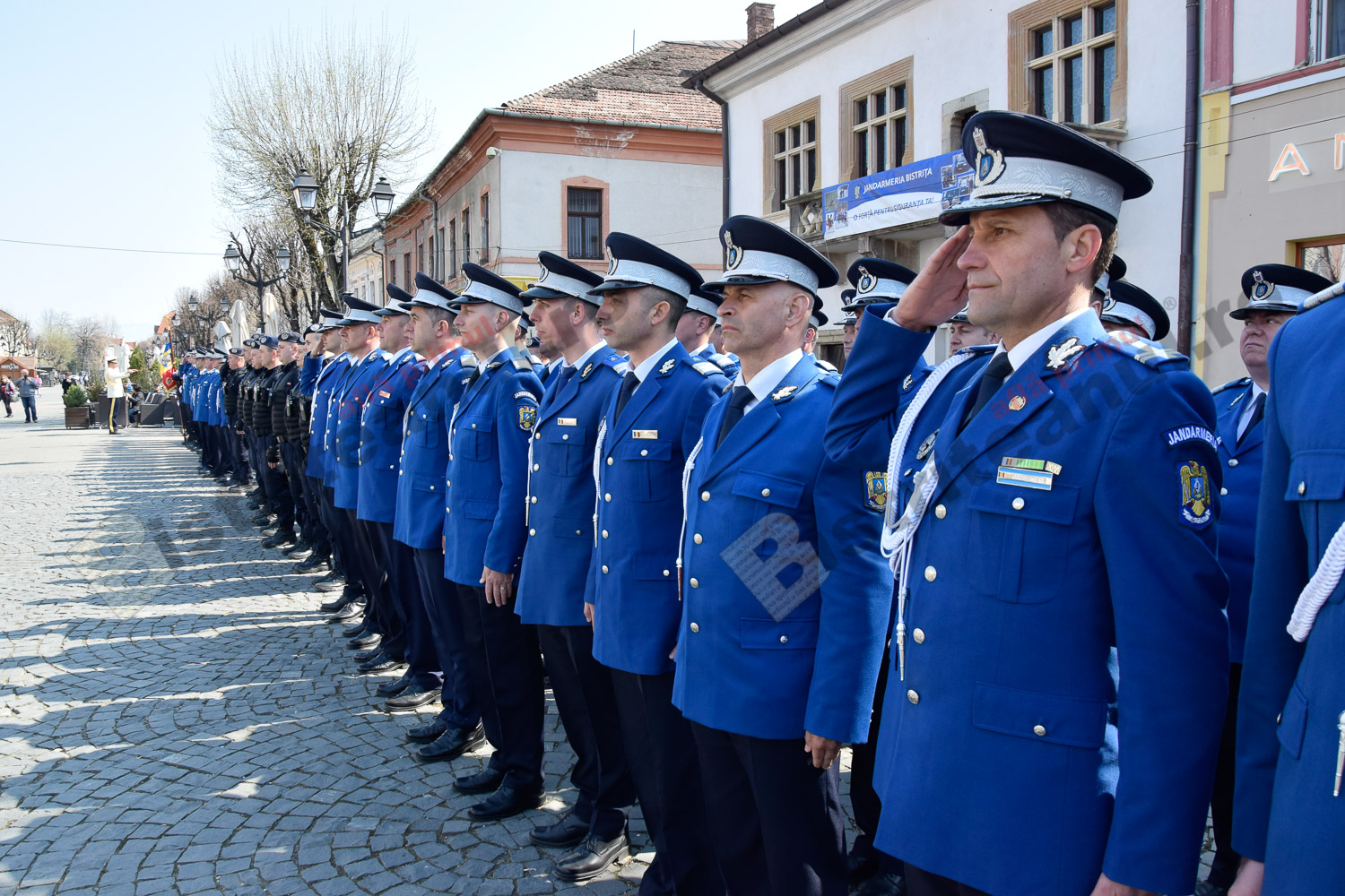 Momente frumoase astăzi, pe Pietonalul Liviu Rebreanu. Îmbrăcați în uniforme și echipamentele de rigoare, jandarmii bistrițeni au sărbătorit 169 de ani de la întemeierea Jandarmeriei Române.