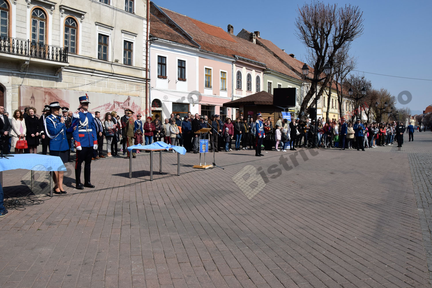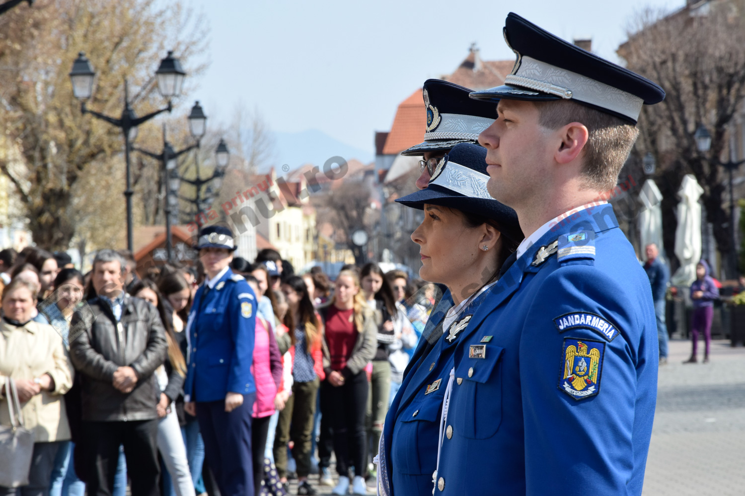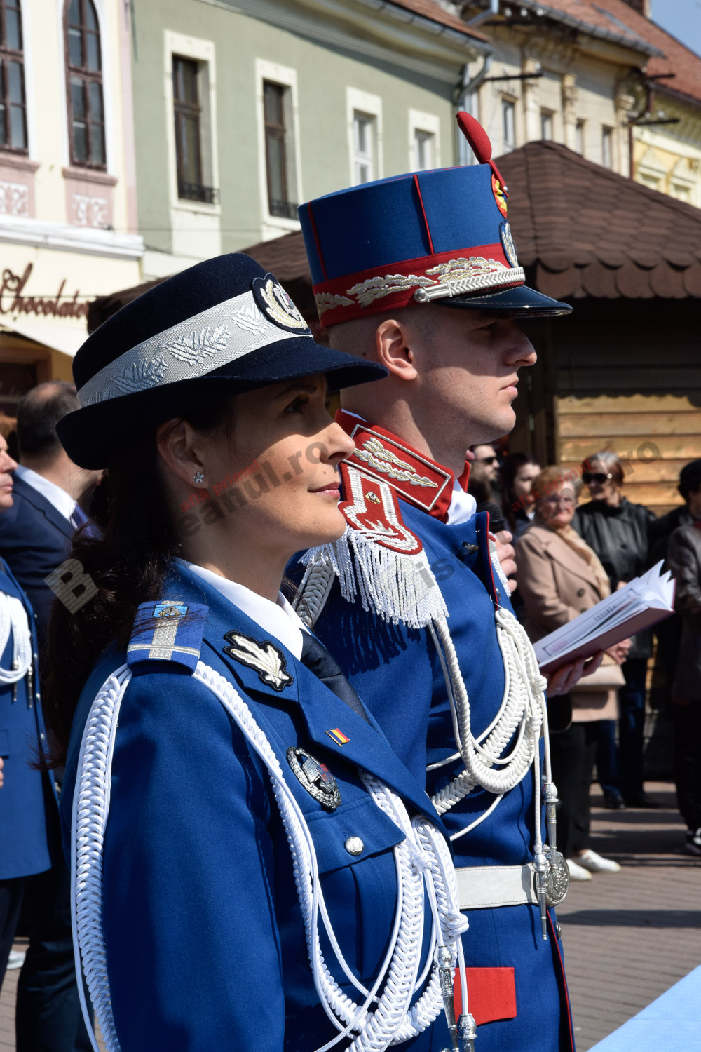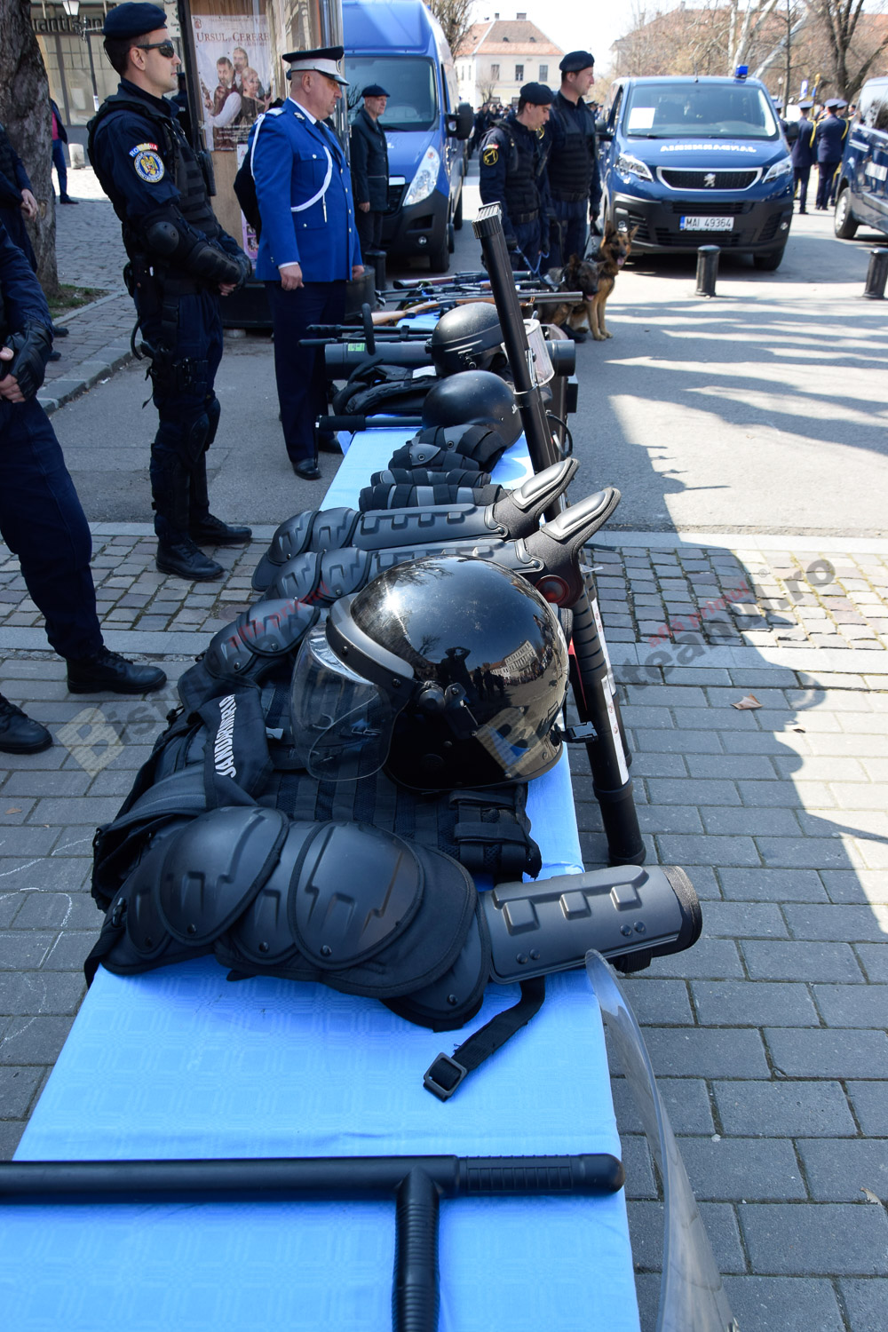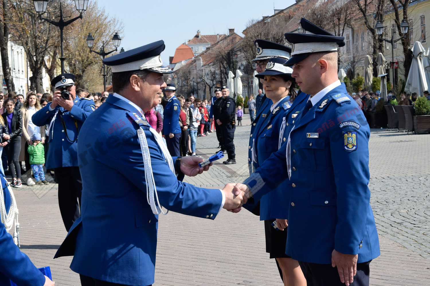 Momente frumoase astăzi, pe Pietonalul Liviu Rebreanu. Îmbrăcați în uniforme și echipamentele de rigoare, jandarmii bistrițeni au sărbătorit 169 de ani de la întemeierea Jandarmeriei Române.