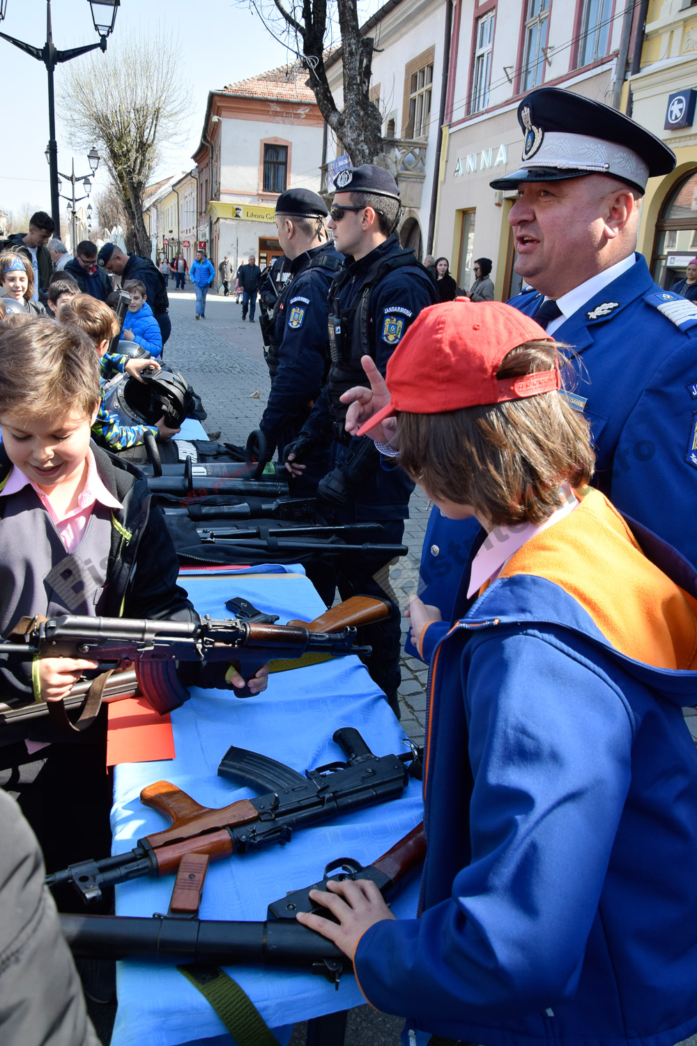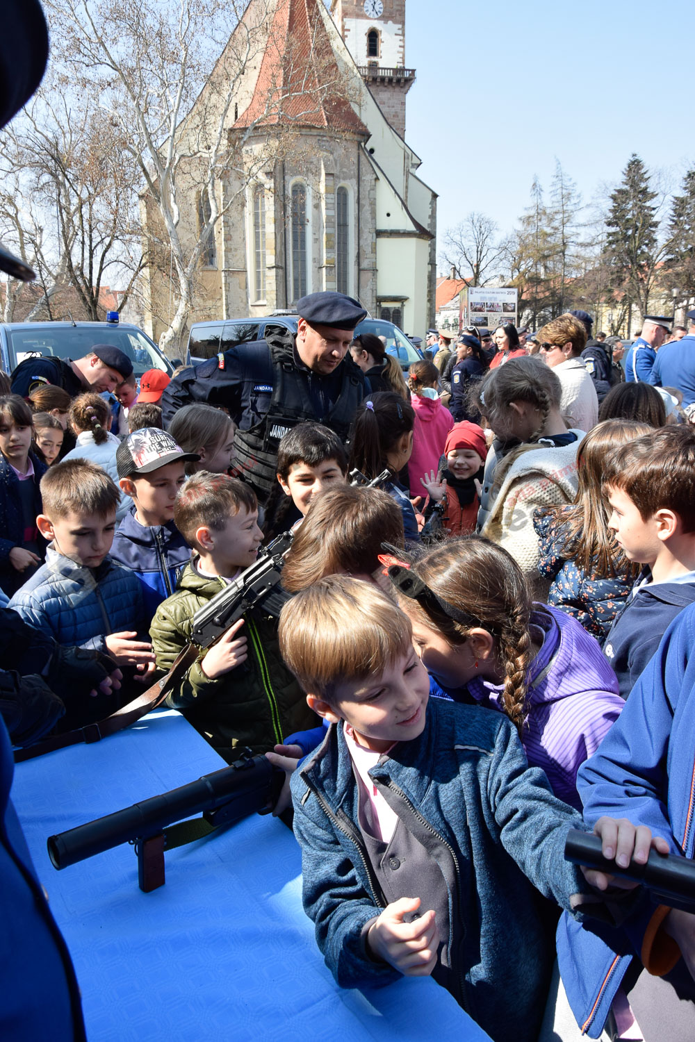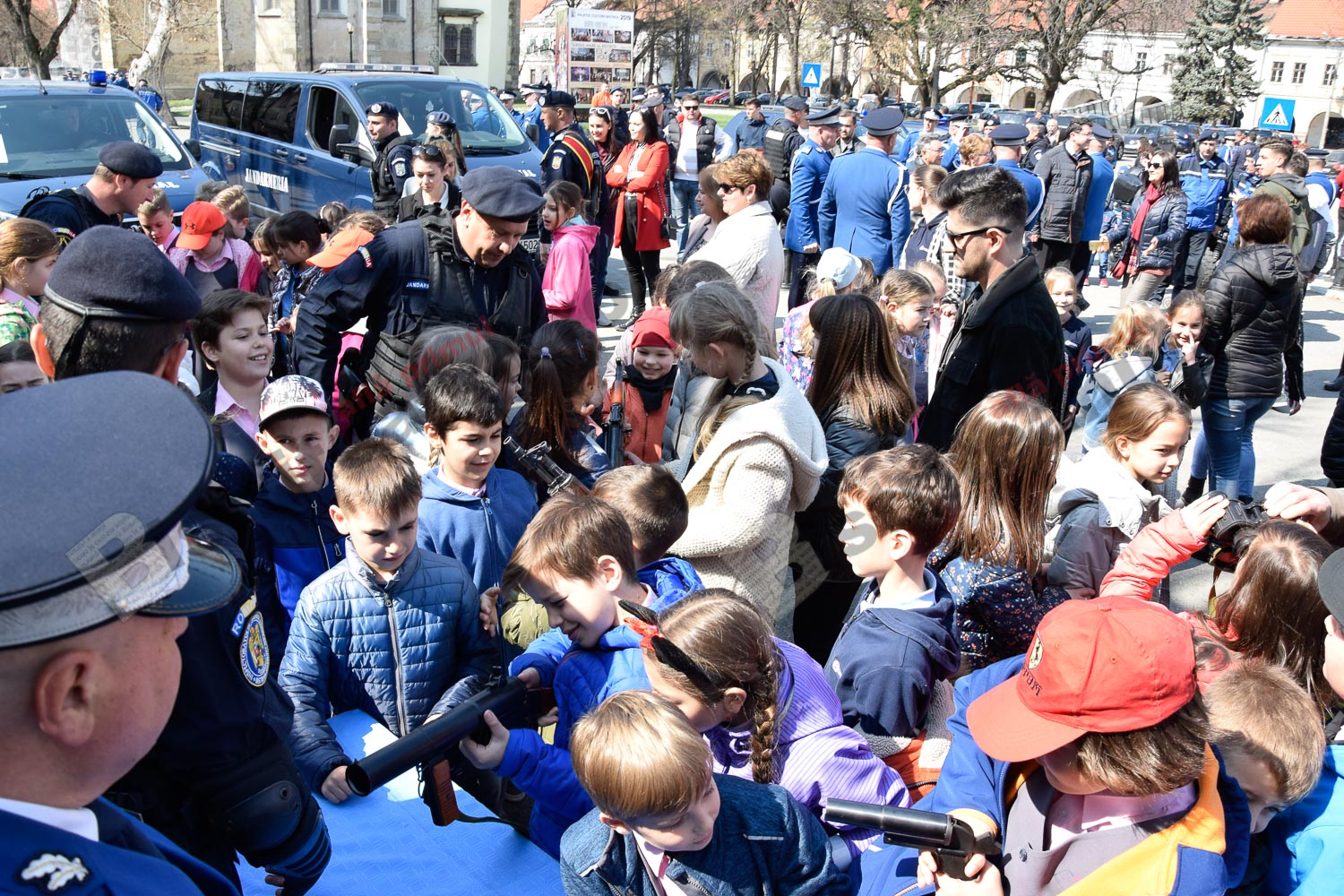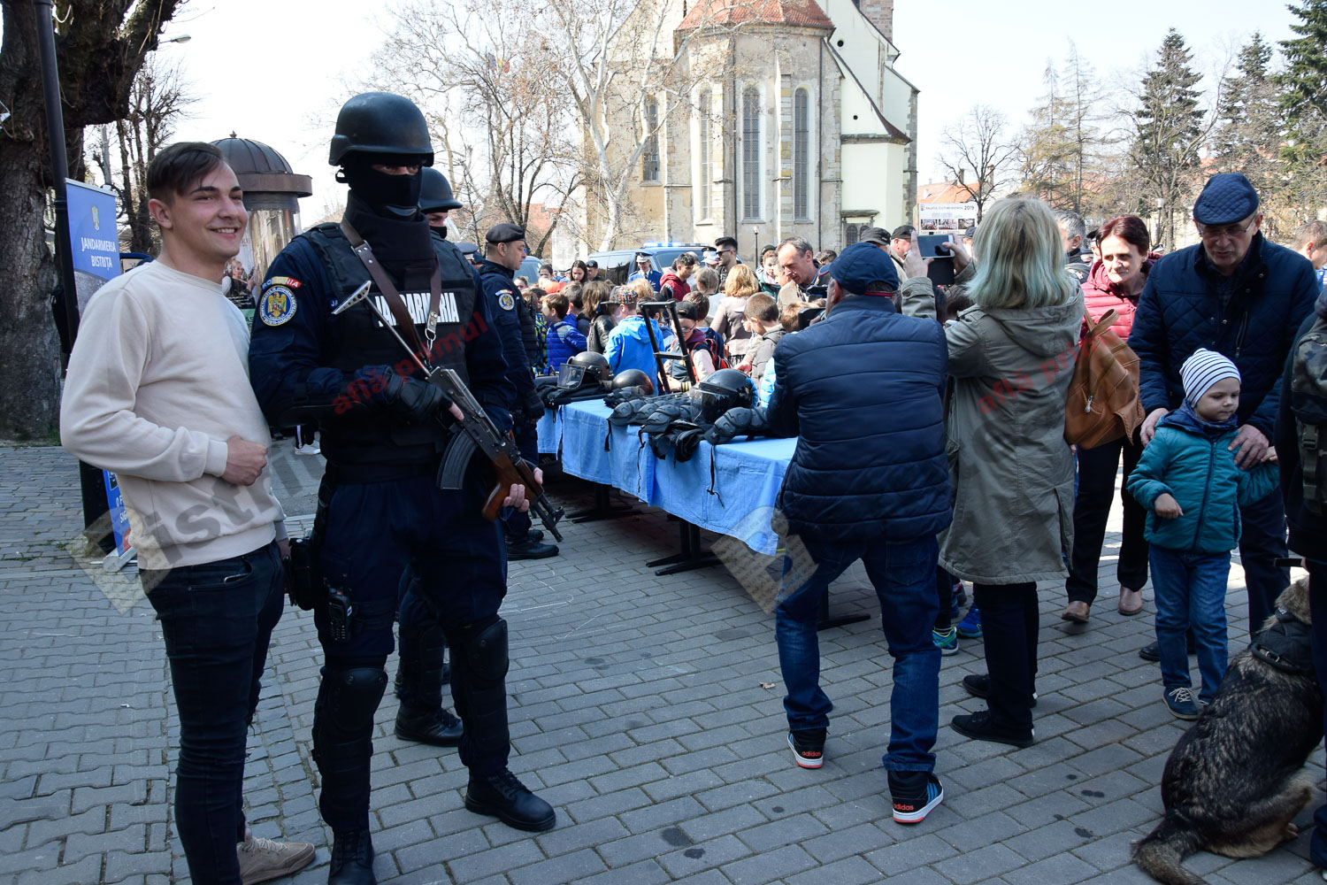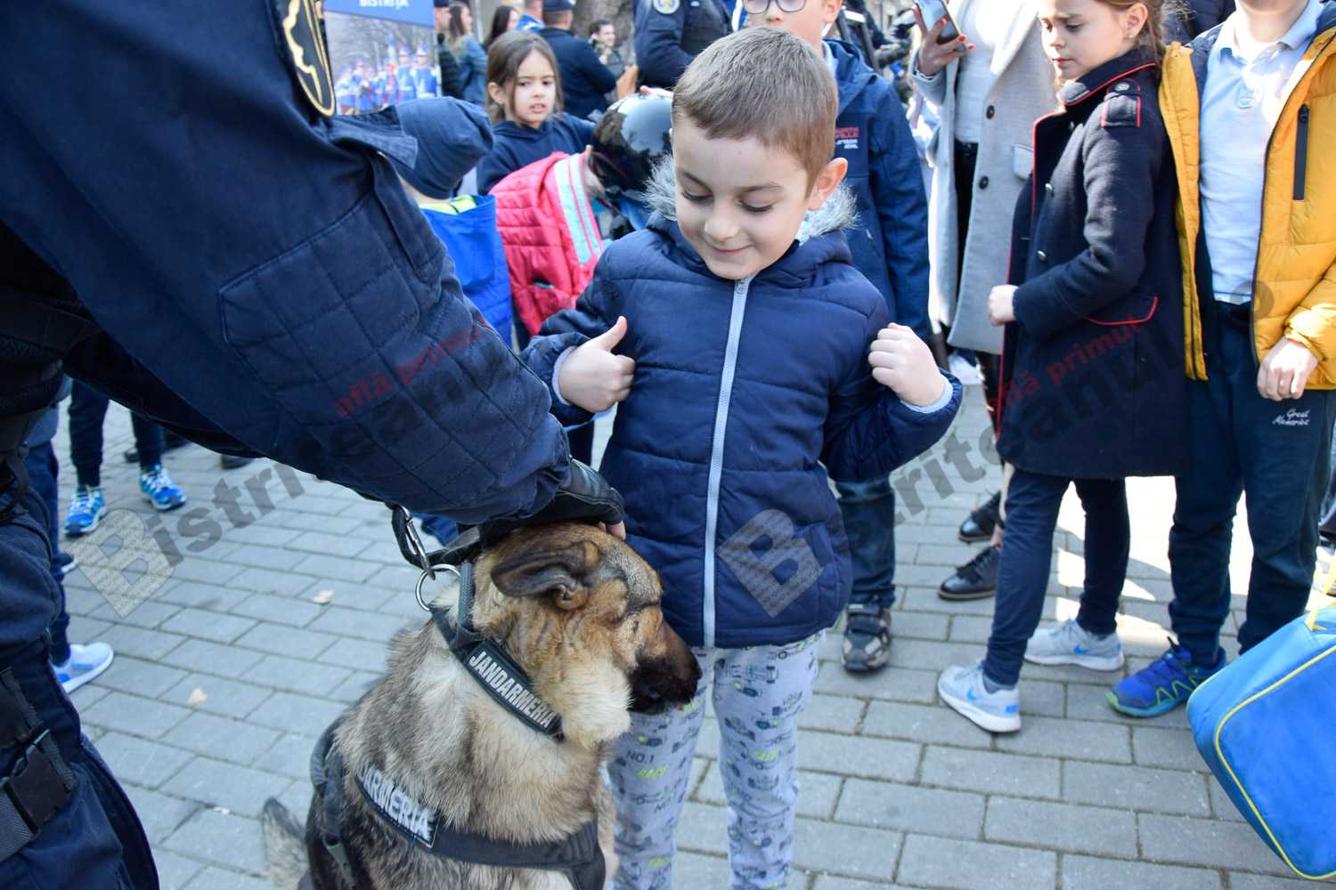 Emoția a acaparat azi Pietonalul Liviu Rebreanu, unde s-au sărbătorit 169 de ani de la înființarea Jandarmeriei Române. Bistrițeni de toate vârstele și mulți copilași le-au fost alături și s-au bucurat să admire uniformele, echipamentele și mai ales, câinii jandarmilor.