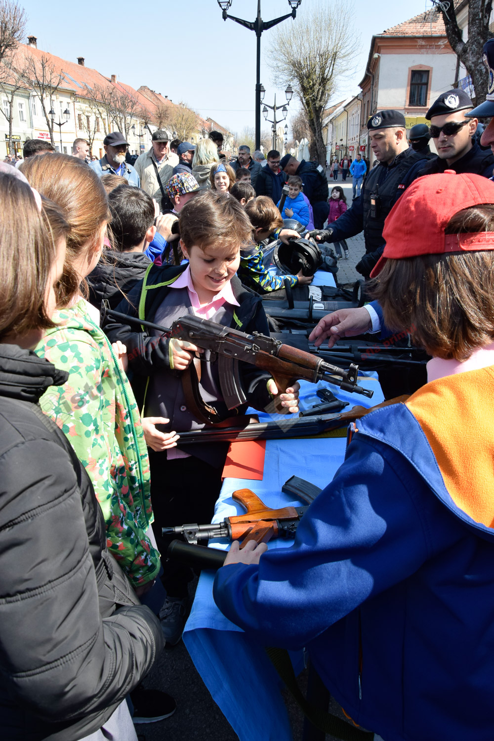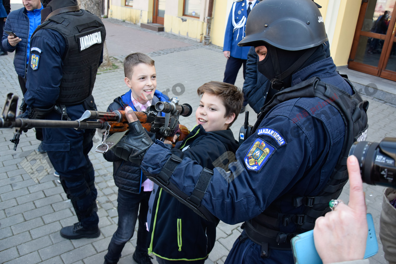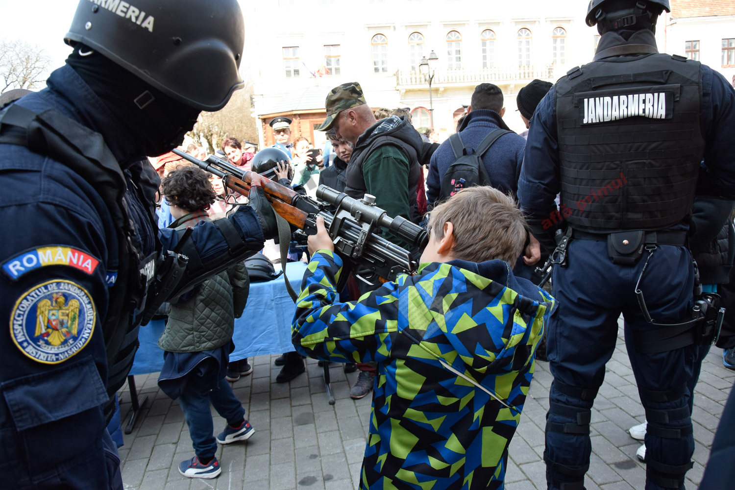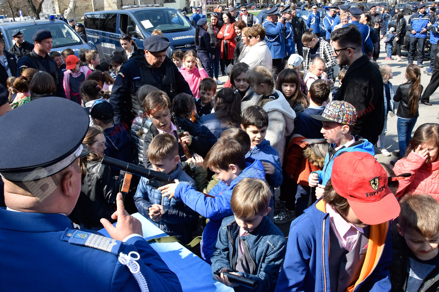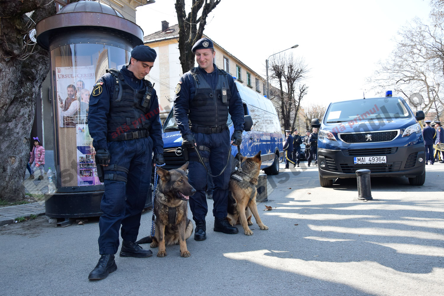 Emoția a acaparat azi Pietonalul Liviu Rebreanu, unde s-au sărbătorit 169 de ani de la înființarea Jandarmeriei Române. Bistrițeni de toate vârstele și mulți copilași le-au fost alături și s-au bucurat să admire uniformele, echipamentele și mai ales, câinii jandarmilor.