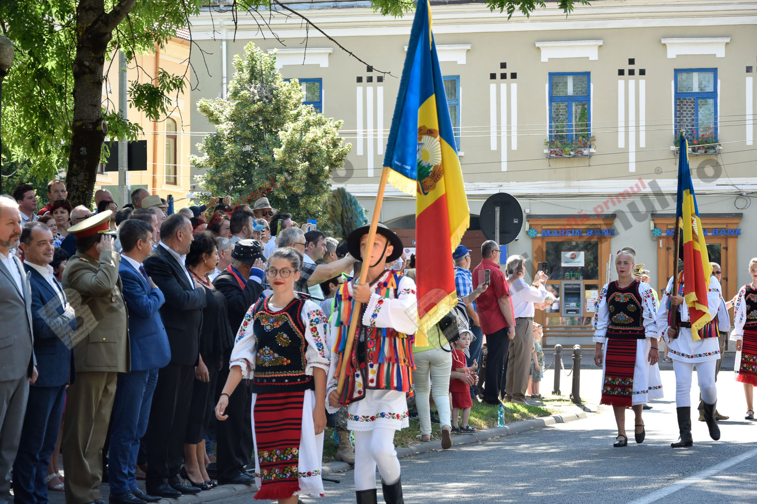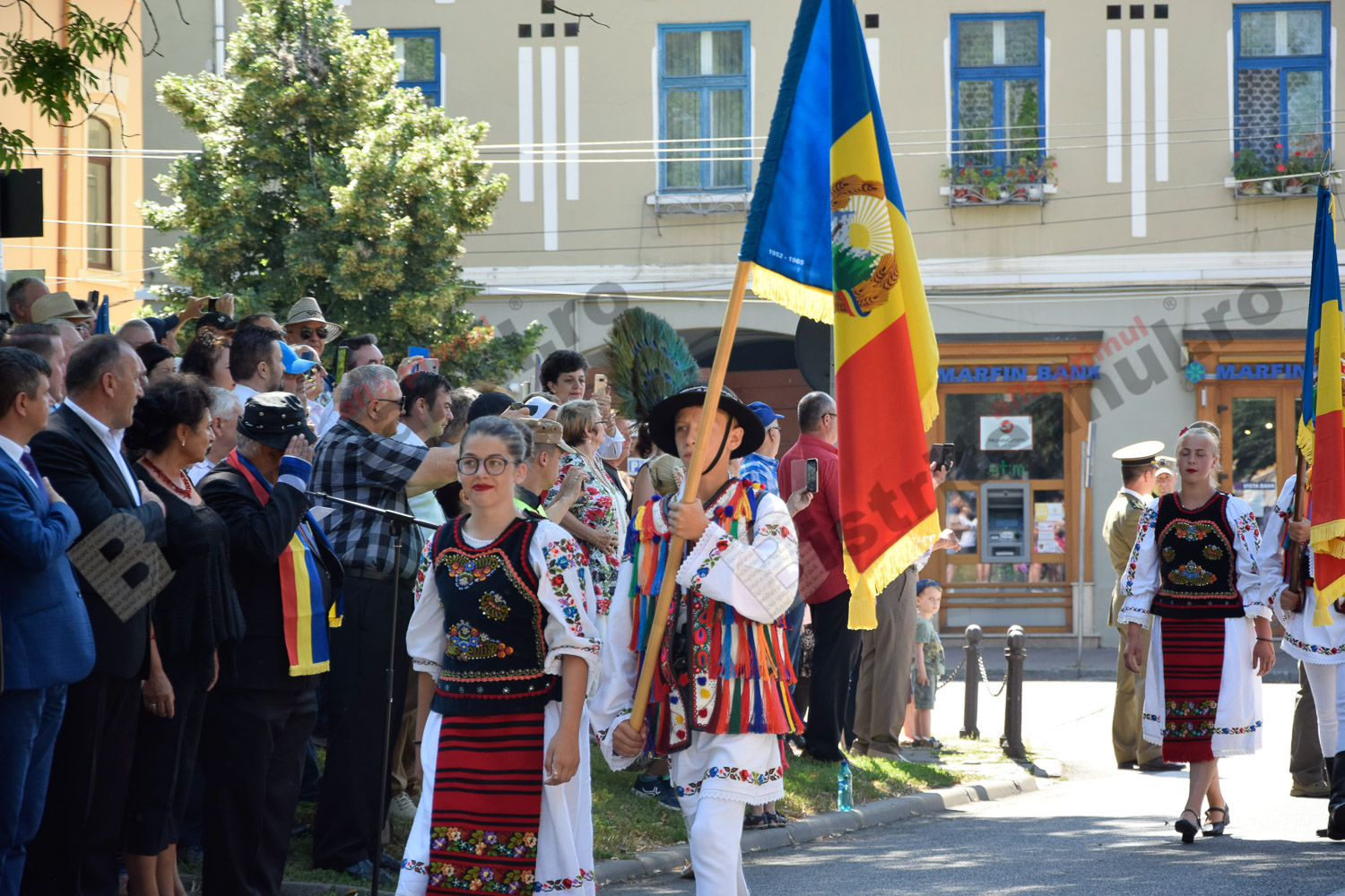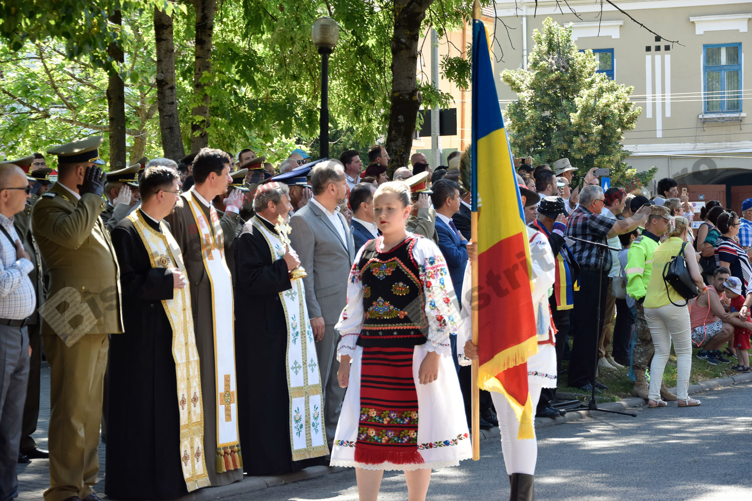 Astăzi, câțiva zeci de bistrițeni, au urmărit cum Drapelul Național se înalță pe catarg. Și nu doar atât. Azi, de Ziua Națională a Drapelului României, alte 24 de drapele au defilat prin fața celor prezenți.