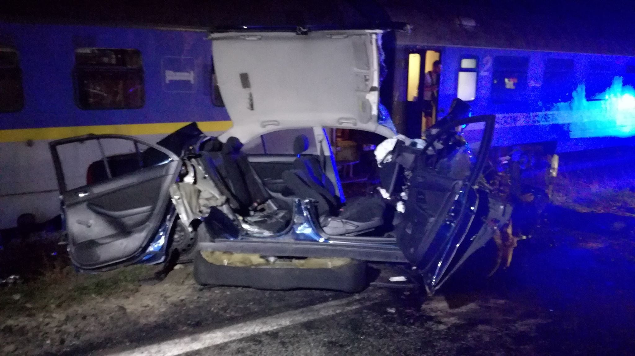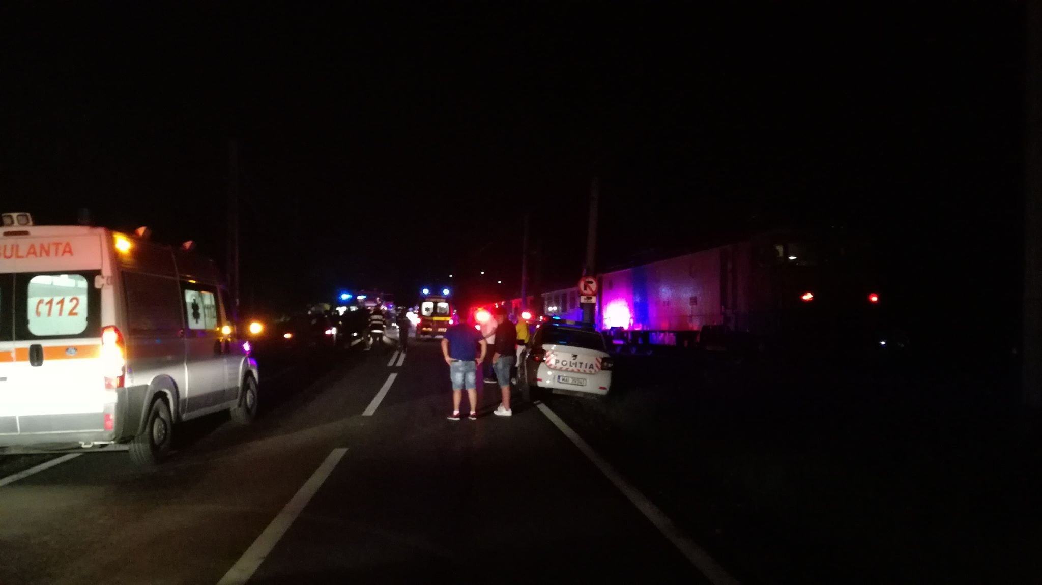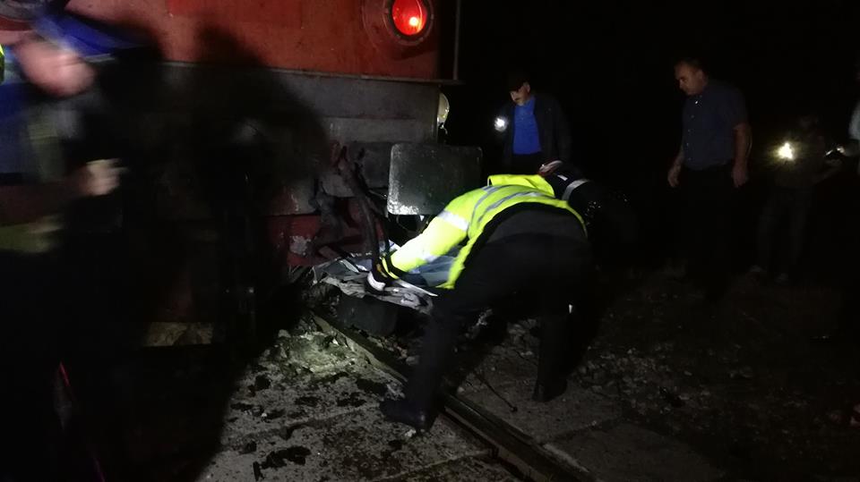 Două autoturisme au colizionat. În urma impactului, una dintre acestea a ajuns pe calea ferată, unde a fost lovită de locomotiva unui tren de persoane.