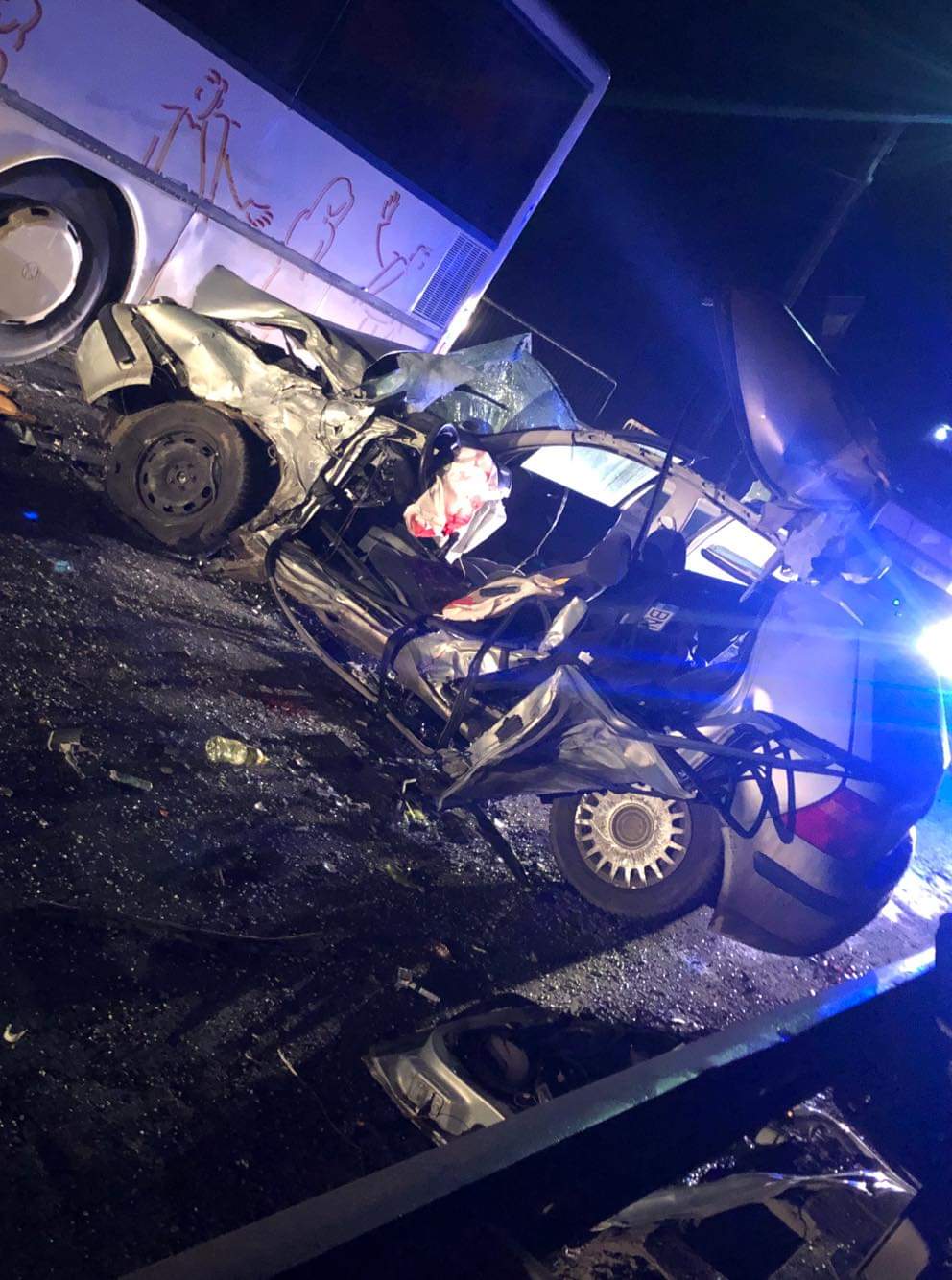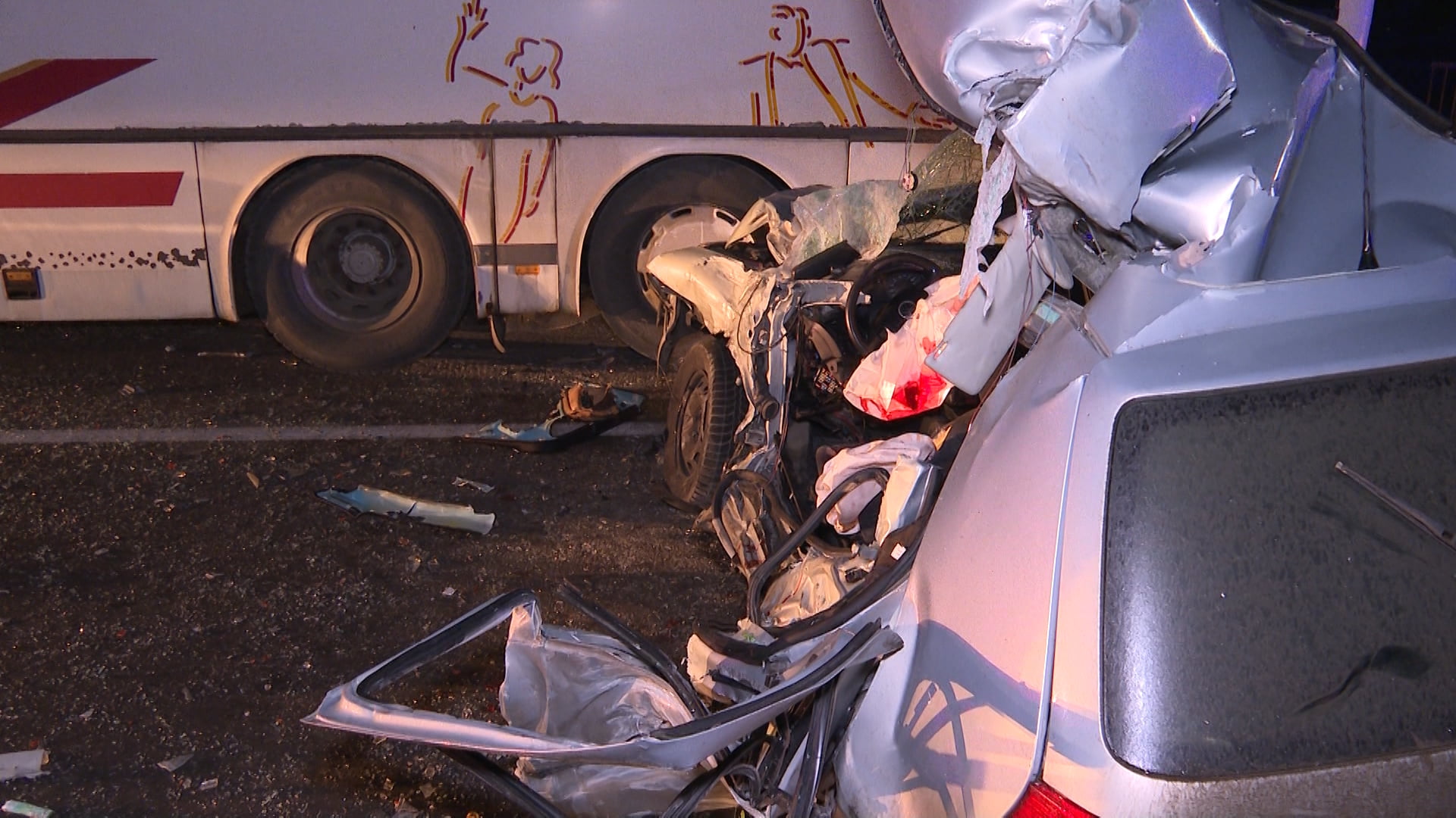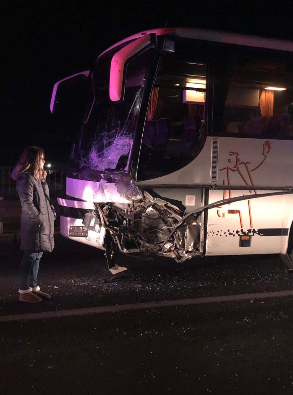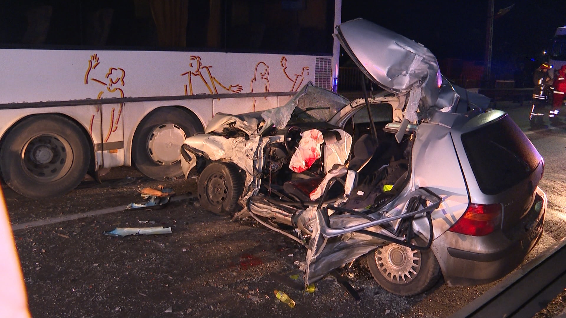În accident au fost implicate un autoturism și un autobuz în care se aflau 35 de persoane, care nu au necesitat ajutor medical. În urma impactului șoferul autoturismului a rămas încarcerat și se afla în stop cardio-respirator.