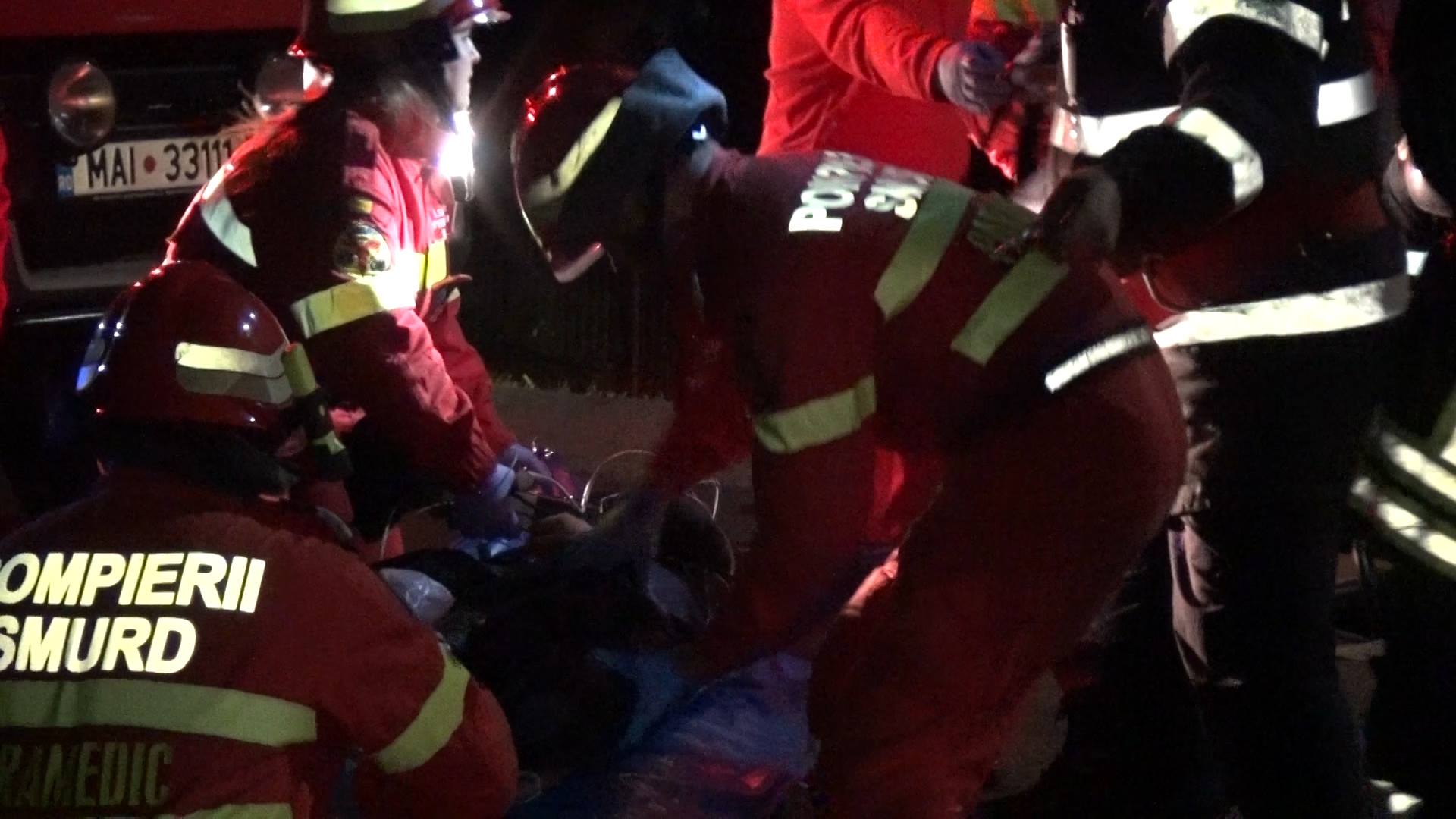 În urma impactului puternic, șoferul de 24 de ani din autoturism a rămas încarcerat între fiarele contorsionate ale autoturismului, având nevoie de ajutorul pompierilor militari pentru a se elibera.