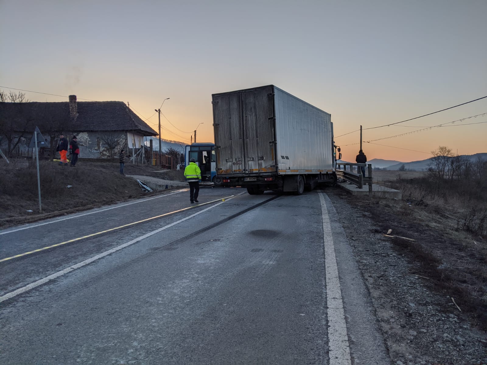 „Conform primelor date, șoferul unei autoutilitare care circula pe direcția Bistrița-Reghin, la intrarea în localitatea Galații Bistriței ar fi pătruns pe contrasens pentru a evita insula de reducere a vitezei și a intrat în coliziune frontală cu un autobuz care circula regulamentar, din sens opus. Din păcate, în urma accidentului, șoferul autotrenului a decedat. Alte 5 persoane, care se aflau în autobuz, au fost rănite și transportate la spital pentru acordarea de îngrijiri medicale. La fața locului intervin echipaje de la Serviciul Rutier, Secția 1 Poliție Rurală Bistrița, precum și criminaliști care efectuează cercetări și măsurători în vederea stabilirii cu exactitate a tuturor împrejurărilor în care a avut loc accidentul”, transmit reprezentanții IPJ BN.