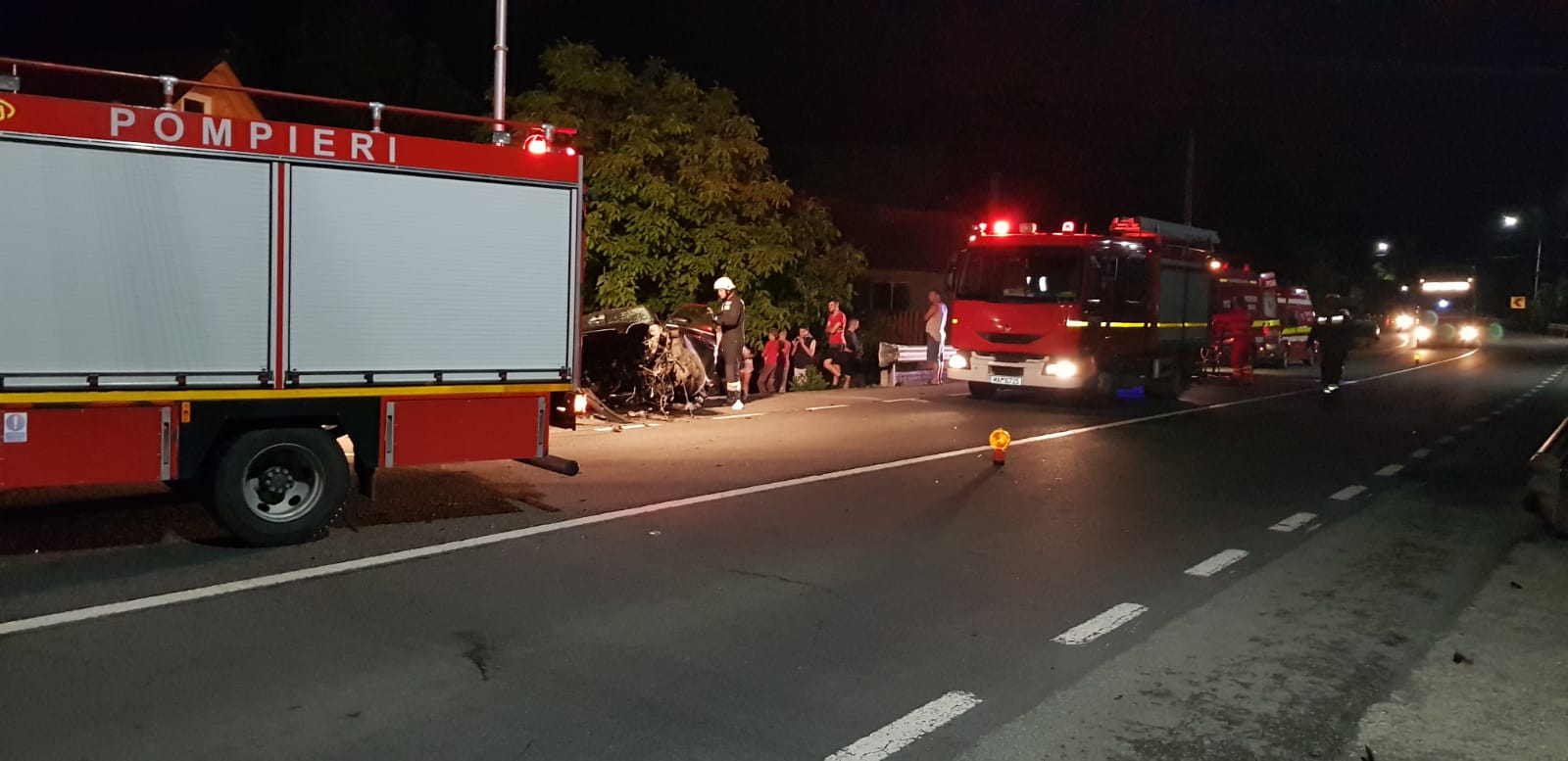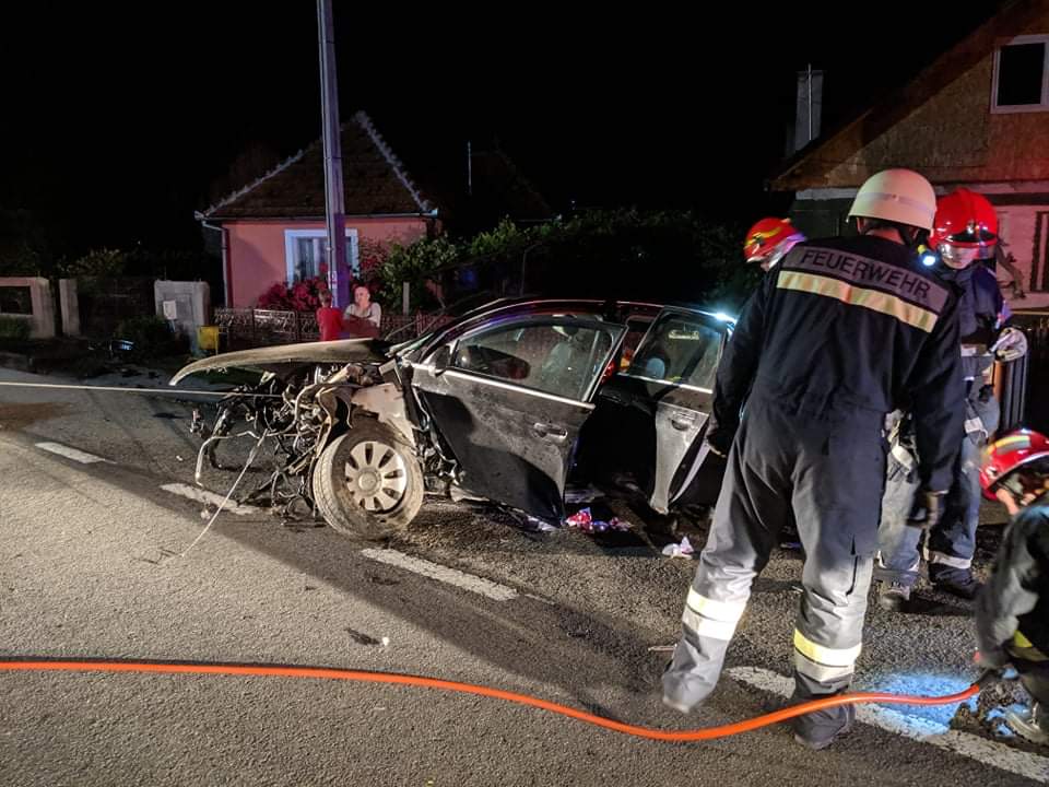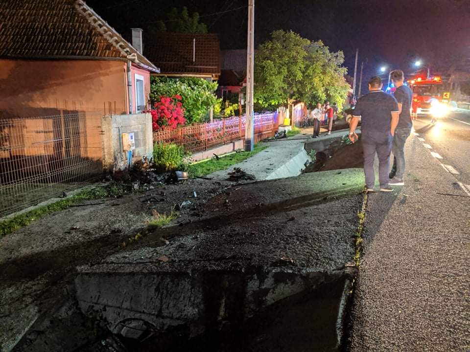 În urma impactului puternic mașina a fost făcută praf, iar motorul a sărit la câțiva zeci de metri de mașină. Din fericire, cei doi pasageri au ieșit singuri din mașină și au așteptat ajutorul.