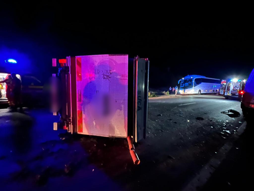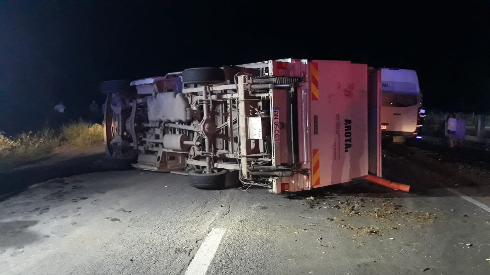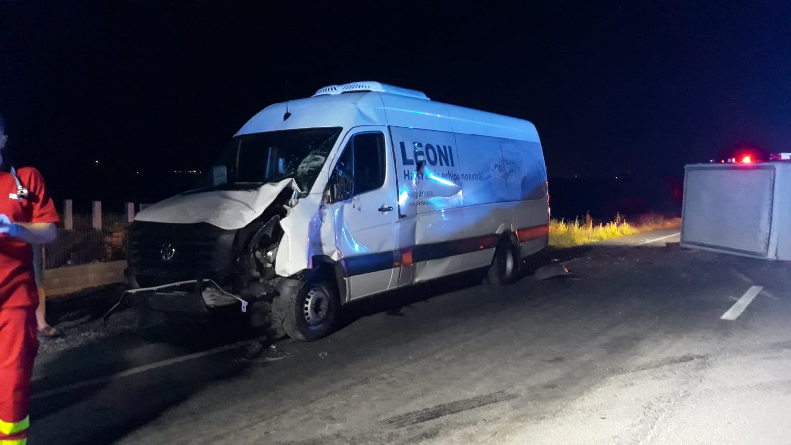 Accidentul a avut loc după miezul nopții, pe DN17, în localitatea Livezile. Un microbuz s-a izbit violent cu o autoutilitară, iar în urma impactului, autoutilitara s-a răsturnat.