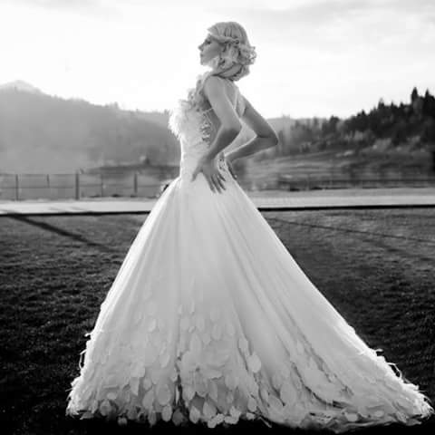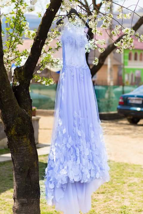 „Prima rochie oficială a fost o rochie de mireasă. O prietenă, care știa de hobby-ul meu mi-a lansat această provocare. Pe rochie am aplicat 2.000 de petale făcute manual, iar pe fiecare petală aveam lipite cinci pene de struț și o perluță. Am lucrat la ea două luni și jumătate. Aveam nopți în care dormeam și numai trei ore”, povestește Raluca.