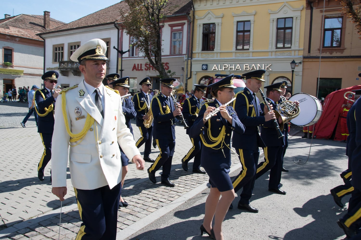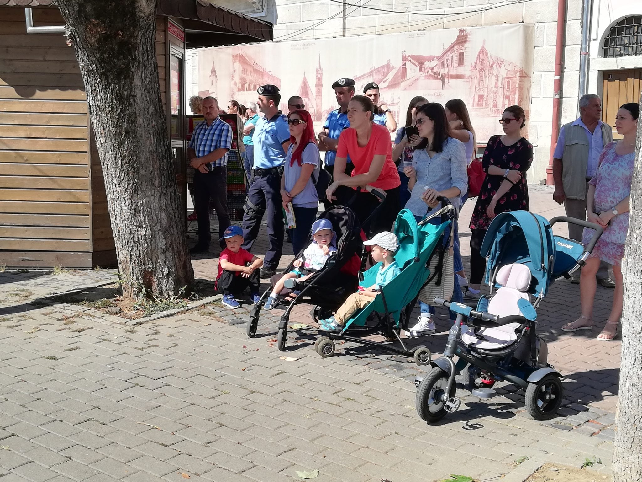 Azi, au transpirat doar de emoție, în cele câteva ore petrecute pe pietonal. Alături de ei au fost oficialități județene și locale, preoți și bistrițeni curioși.