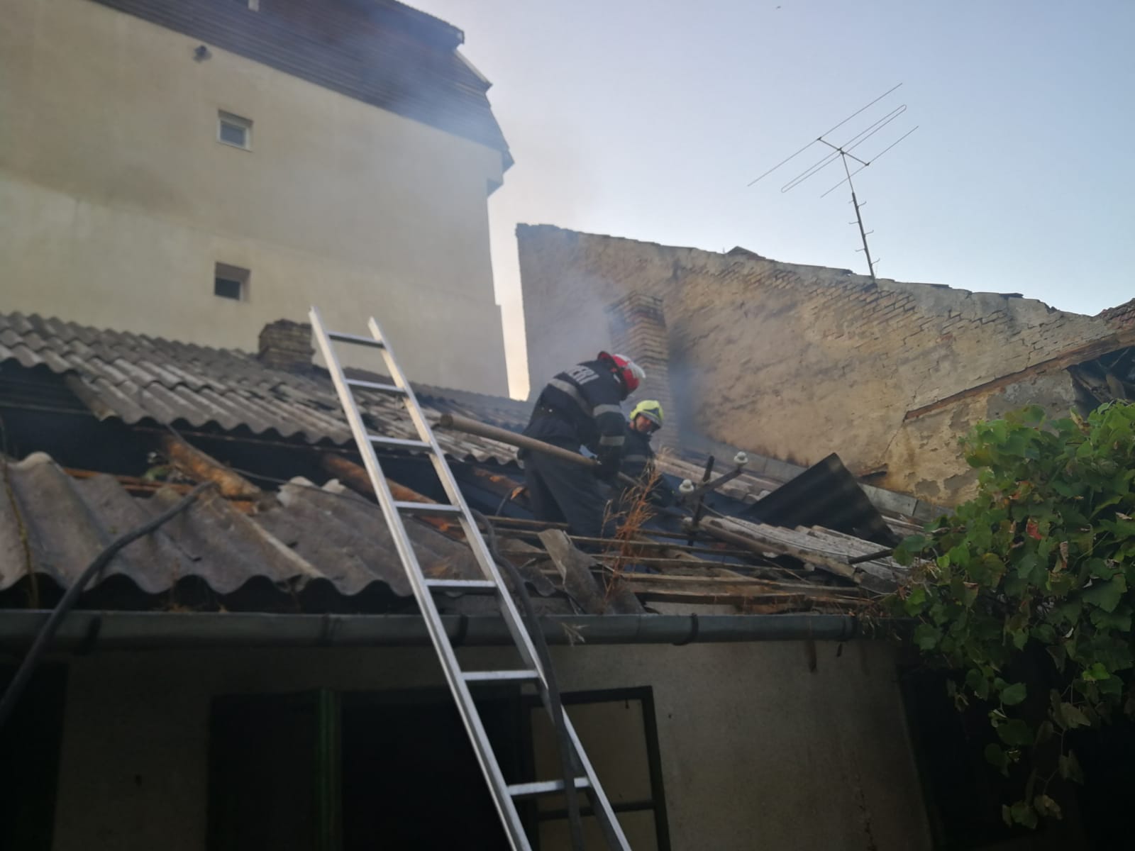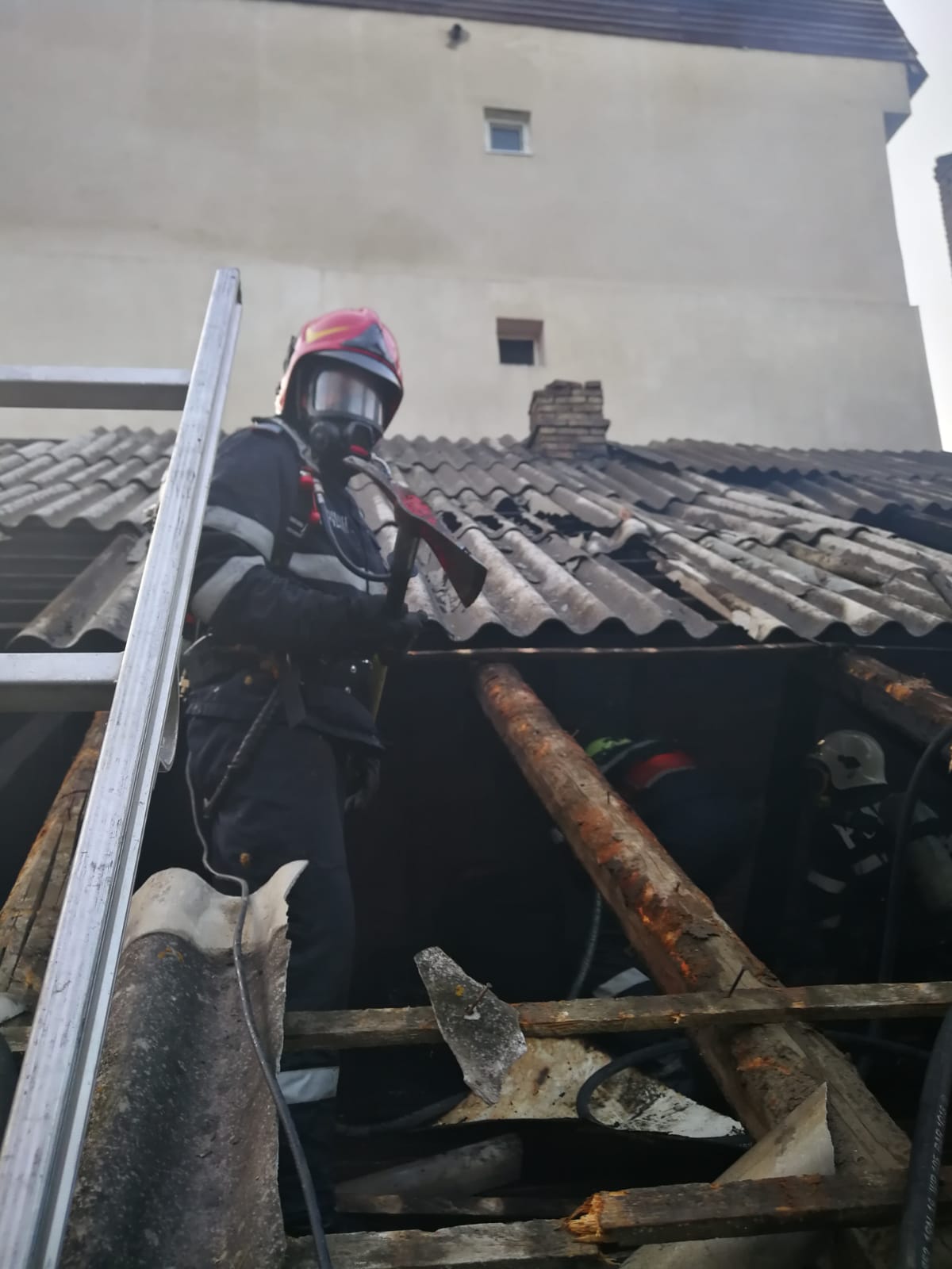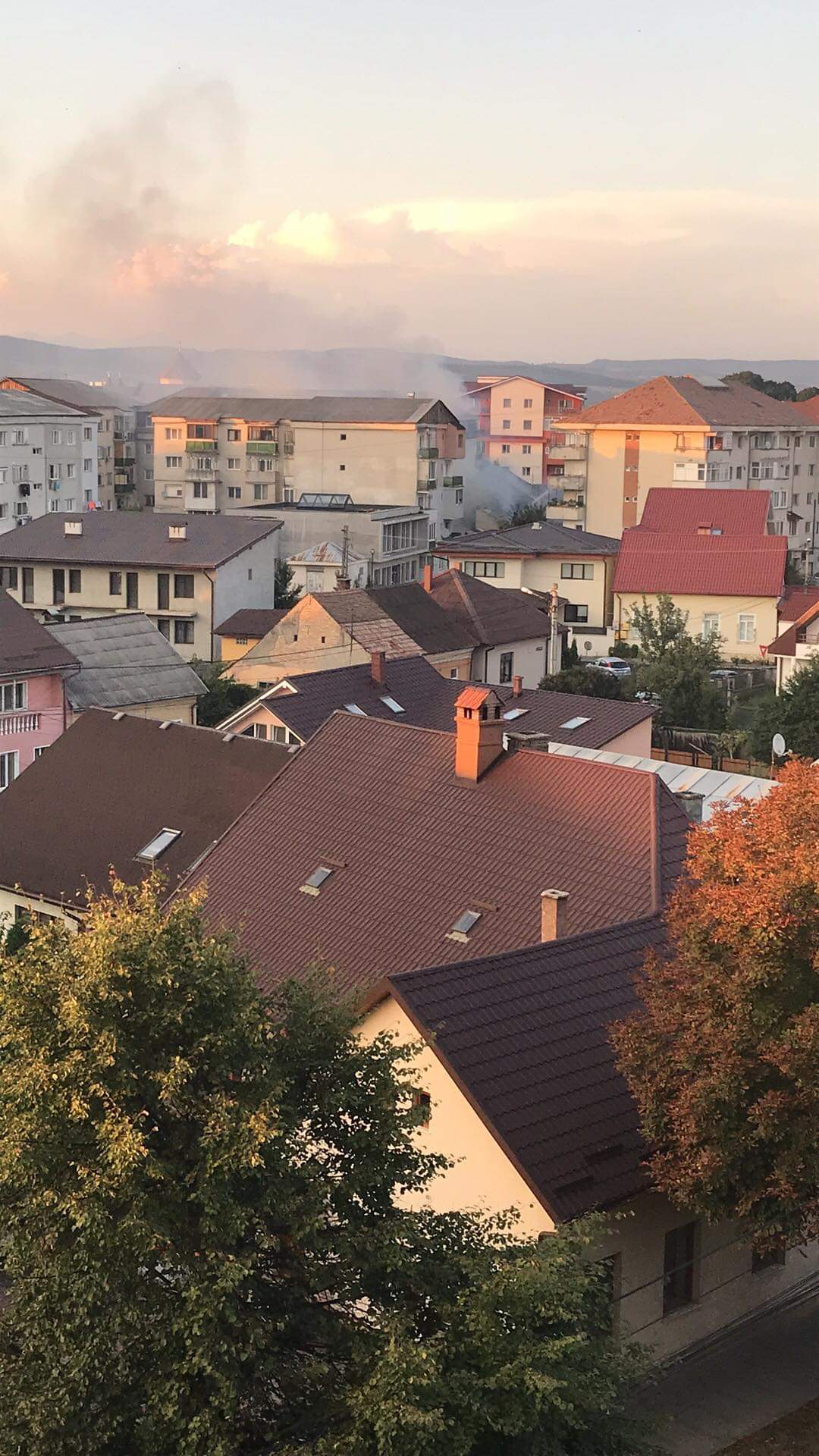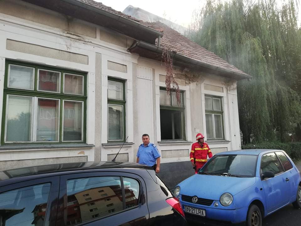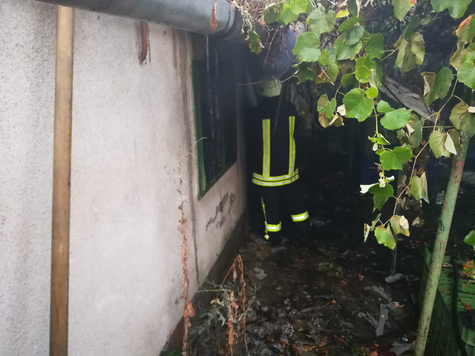 Fumul gros a inundat o casă lipită de bar, care, la rândul ei este abandonată. Pentru a putea interveni și din interior, pompierii au fost nevoiți să spargă ușa de la intrare. În curtea casei un magazin din zonă își depozitează cutiile goale și gunoaiele.