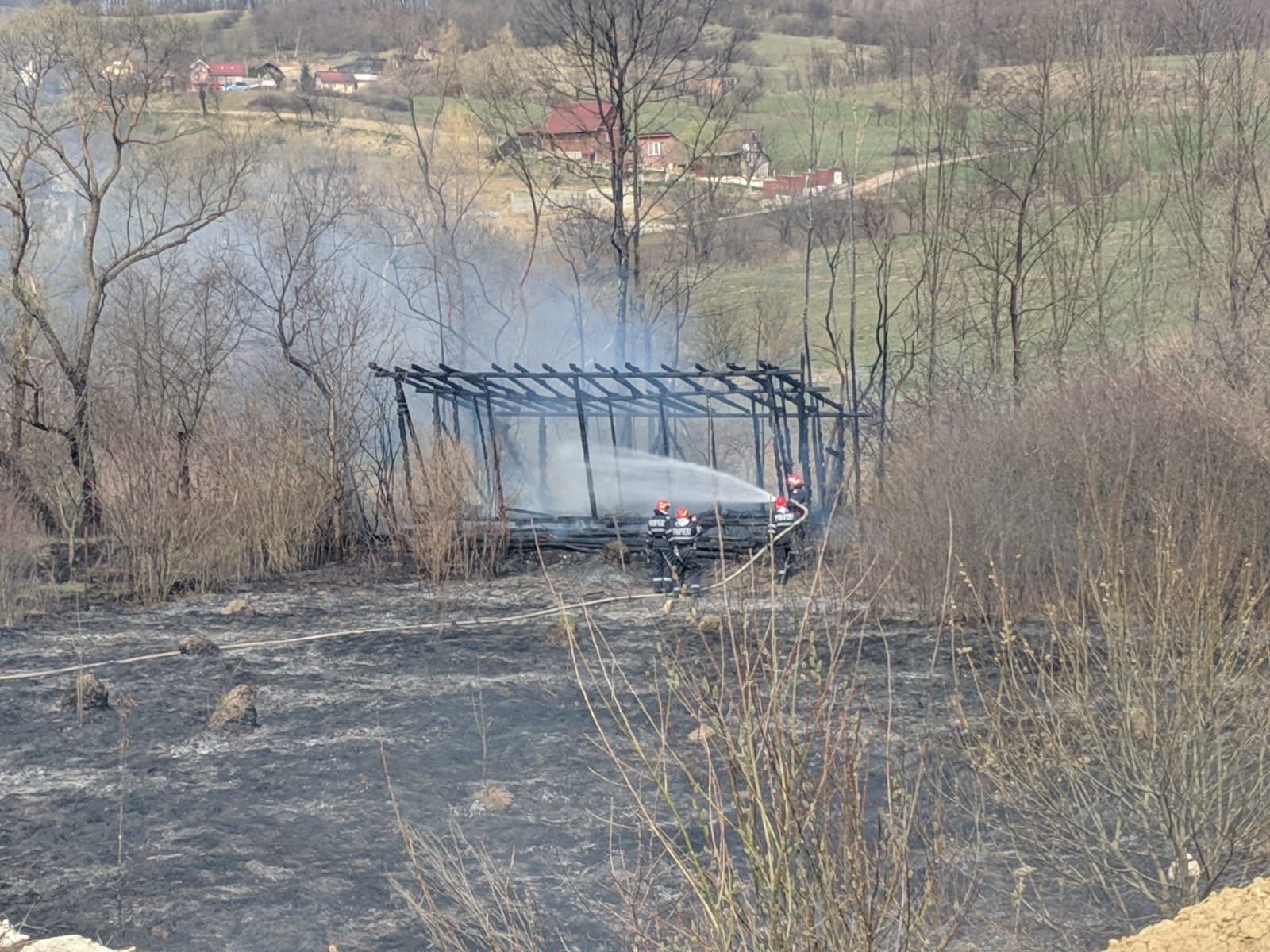 Un incendiu izbucnit pe strada Ghinzii a cuprins vegetația de pe două parcele de teren și a mistuit o anexă gospodărească. Flăcările s-au extins la grădina unui vecin, amenințându-i acestuia casa.
