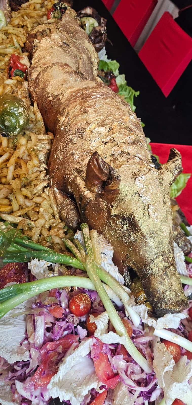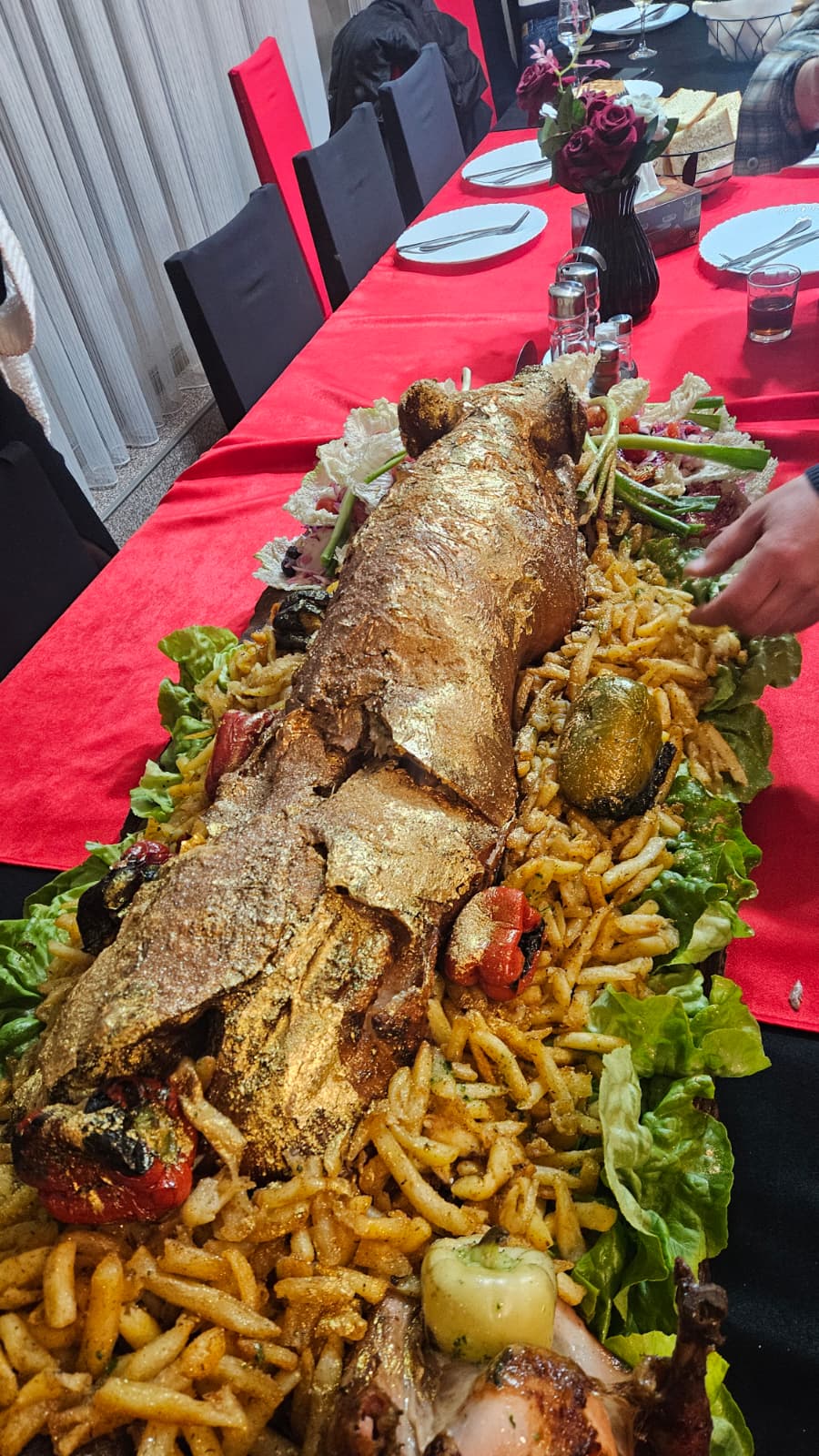 O experiență culinară inedită a avut loc sâmbătă la un eveniment privat din Colibița. Băieții de la Catering Academy, Bogdan Secheli și Alin Marcu, au depășit orice așteptare, pregătind un preparat de senzație: porc la proțap învelit complet în aur de 24K comestibil!