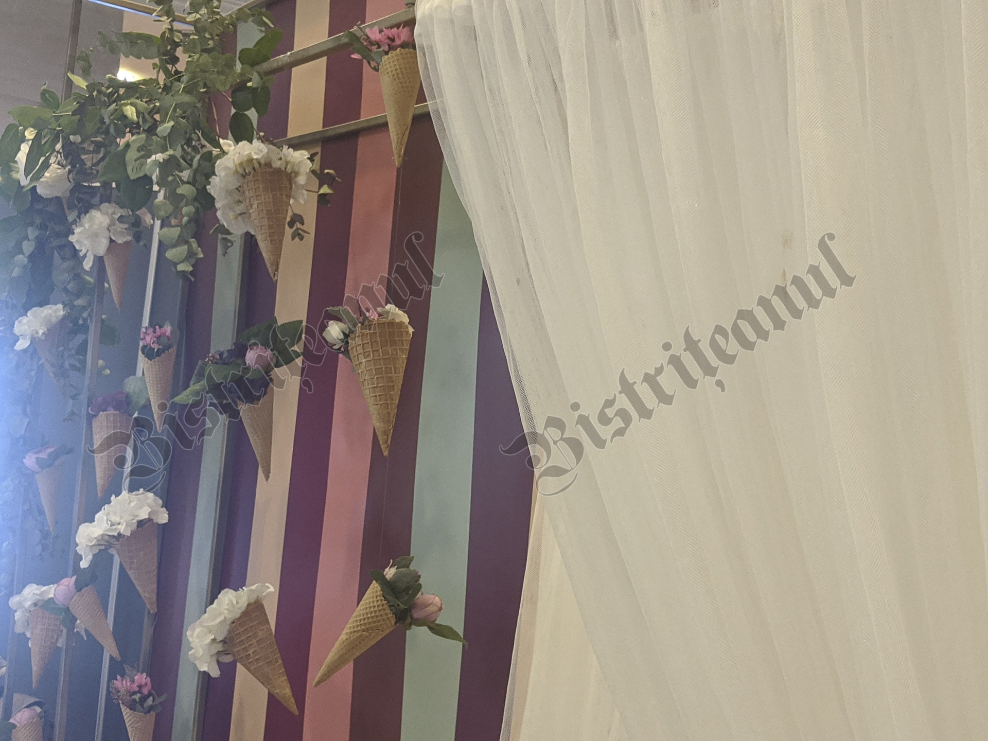 „Noi aducem vitrina, păhărelele, lingurițele, șervețelele și șase sortimente diferite de înghețată. Dacă e o nuntă mai mare, putem suplimenta. Asta se discută în funcție de fiecare eveniment”, au explicat cei de la Gelateria Aniela.