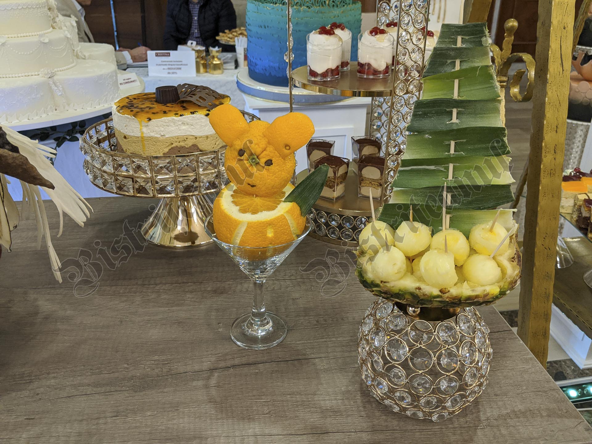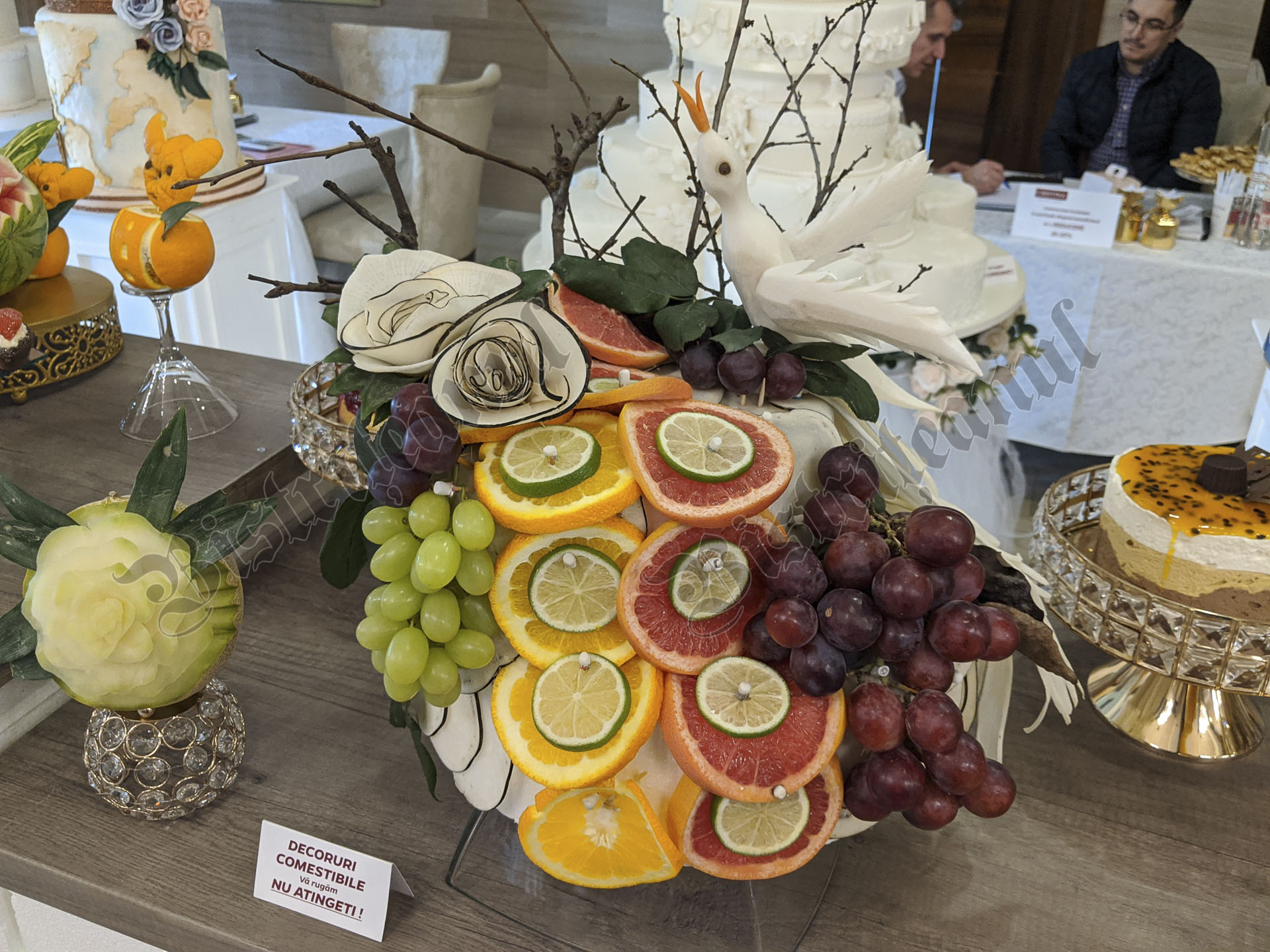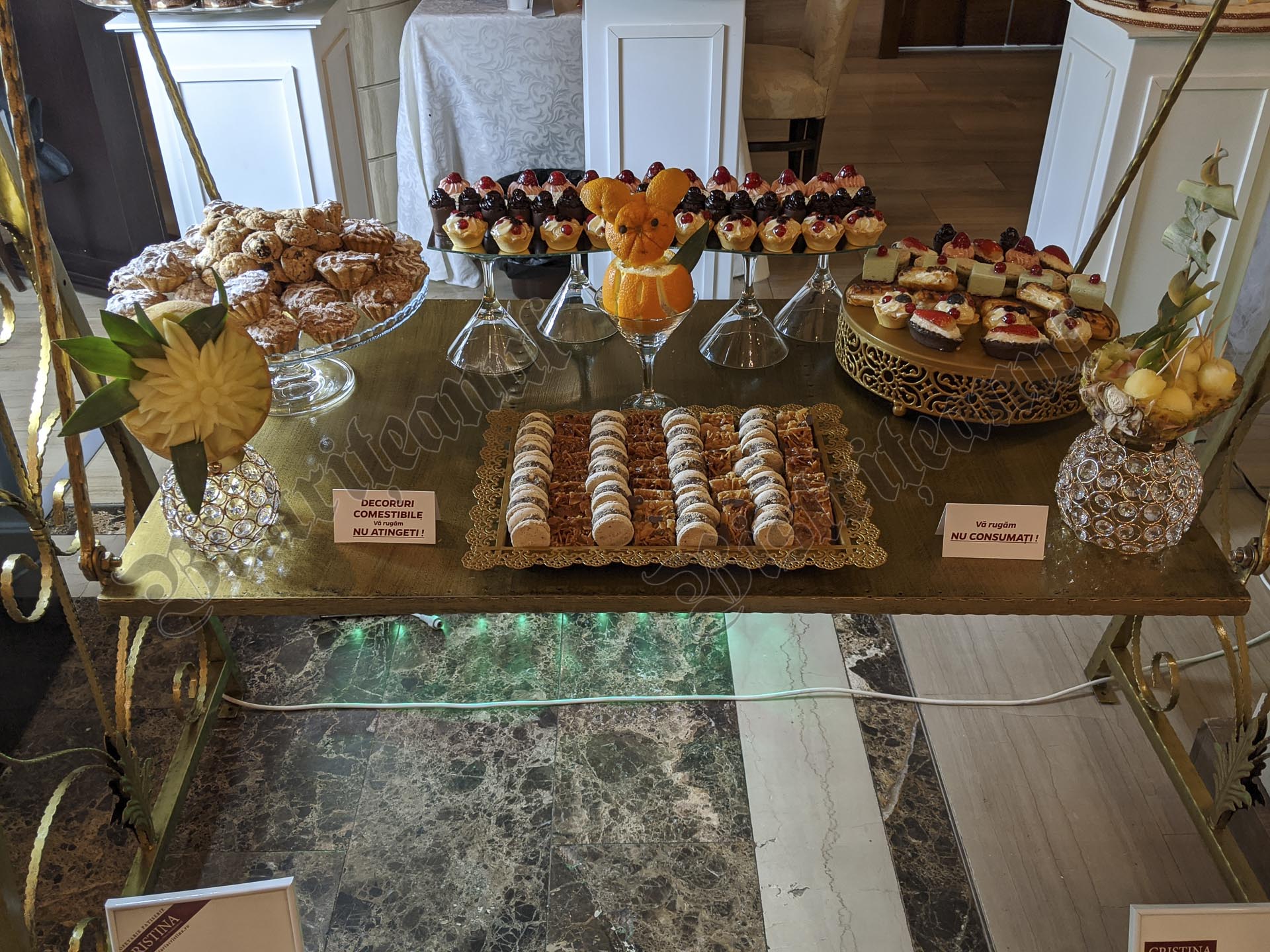 „Totul e făcut cu ingrediente naturale. Pentru că acesta este cel mai important aspect. Avm două torturi noi, care sigur vor impresiona: Red Velvet și Mousse de afine și ciocolată. Totodată, piesa de rezistență a candy bar-ului sunt fructele sculptate, care dau o notă aparte”, a explicat Cristina Istrate.