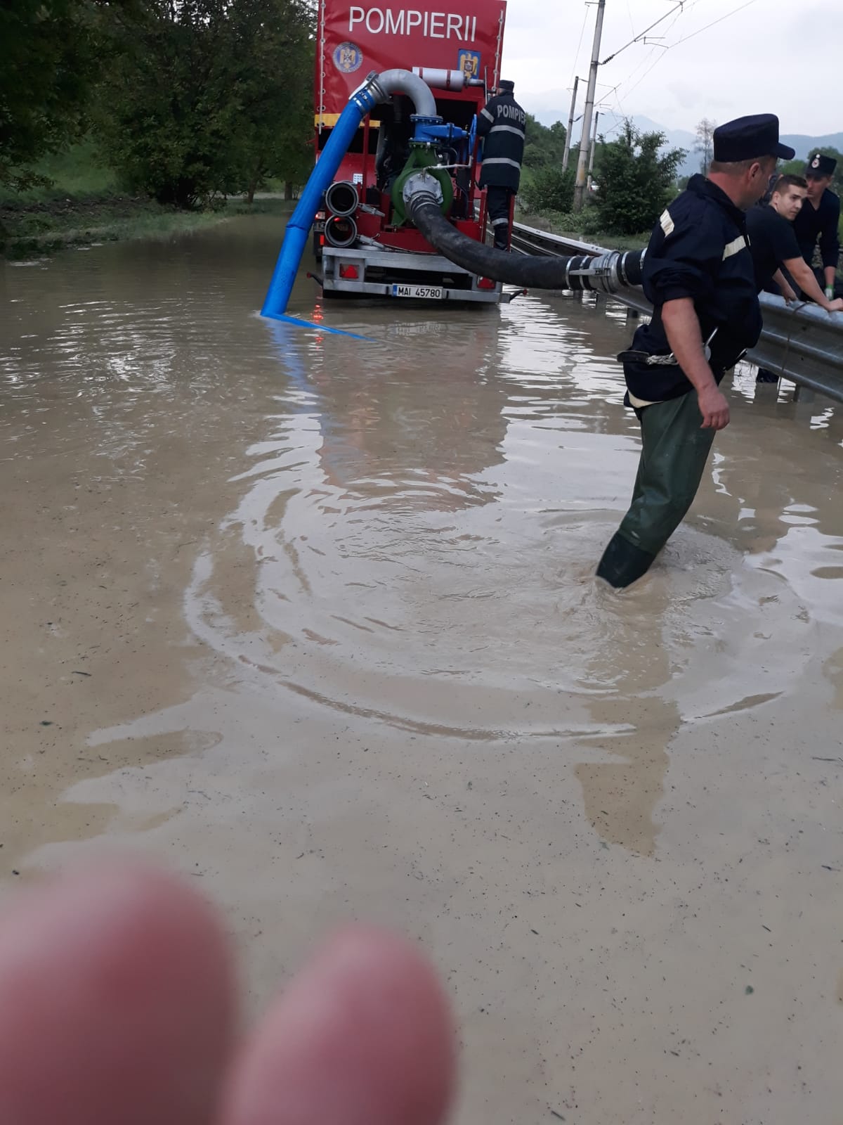 La ora 12:00, un echipaj de pompieri din cadrul Detașamentului Bistrița intervenea cu o motopompă în localitatea Măgurele pentru evacuarea apei din beciuri.