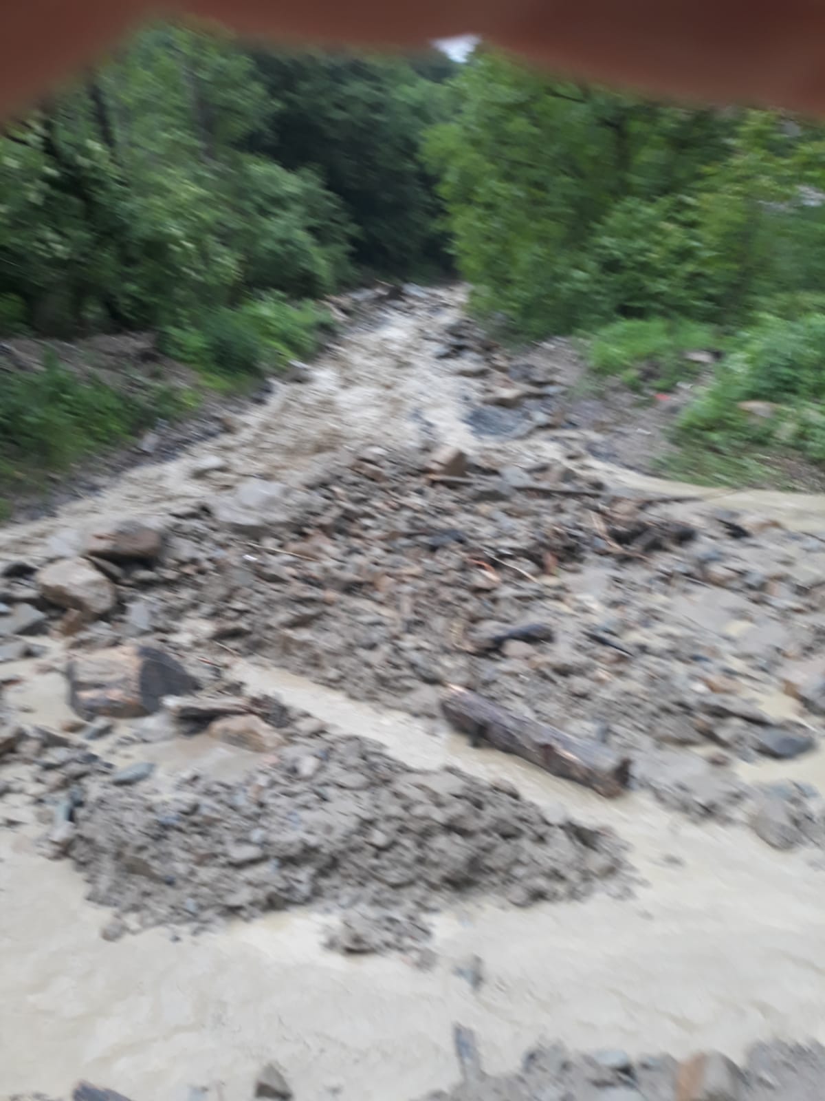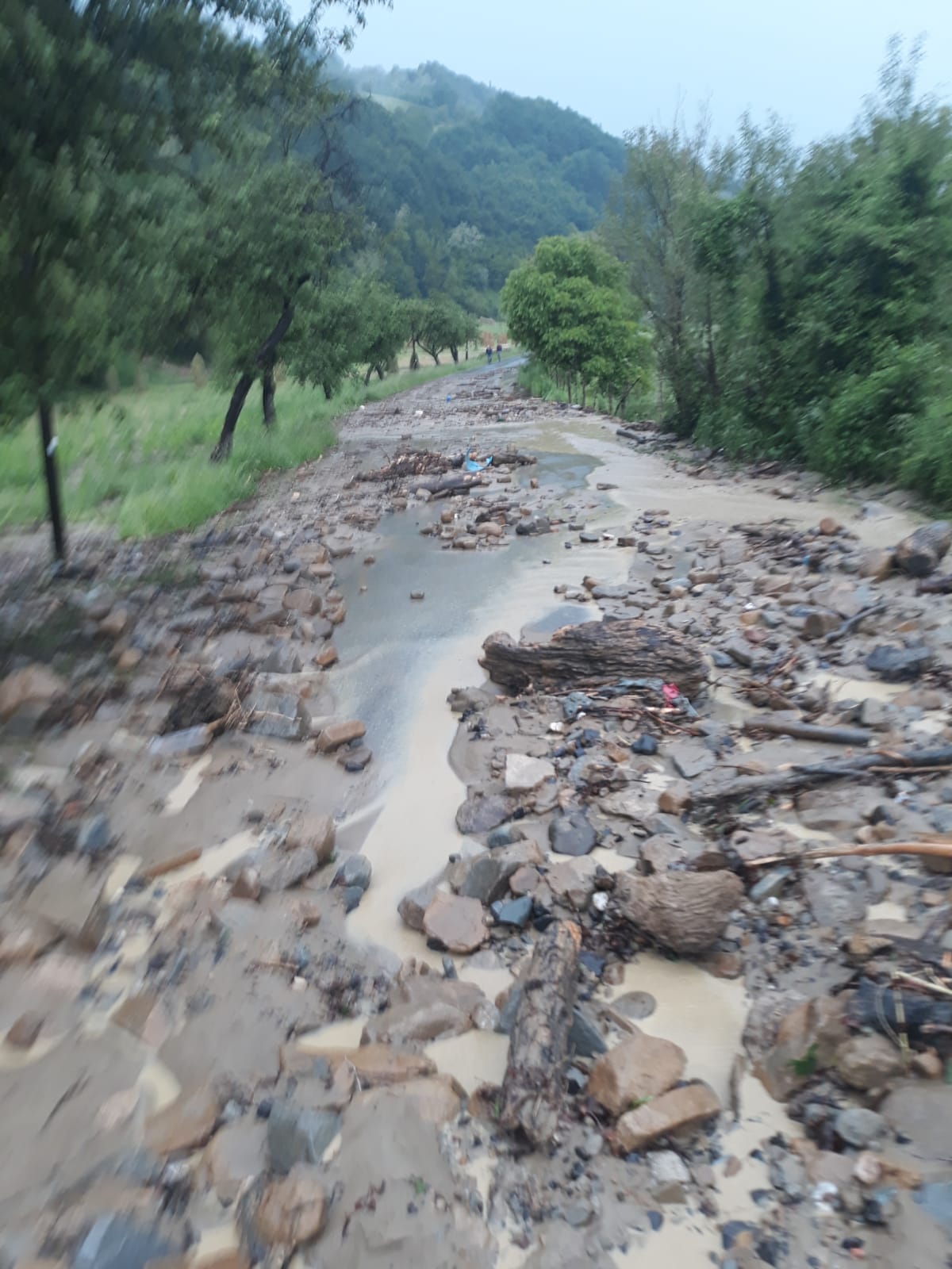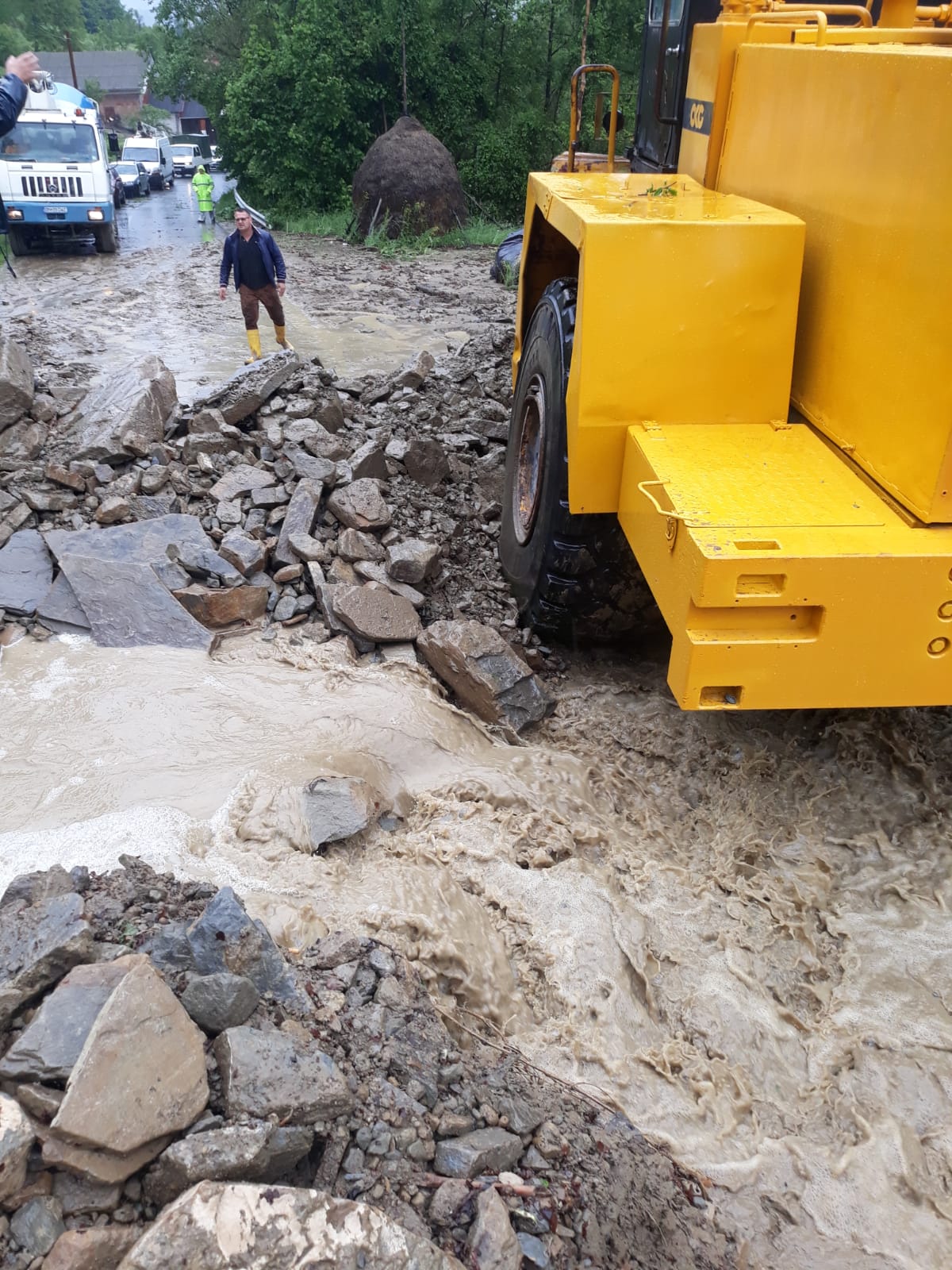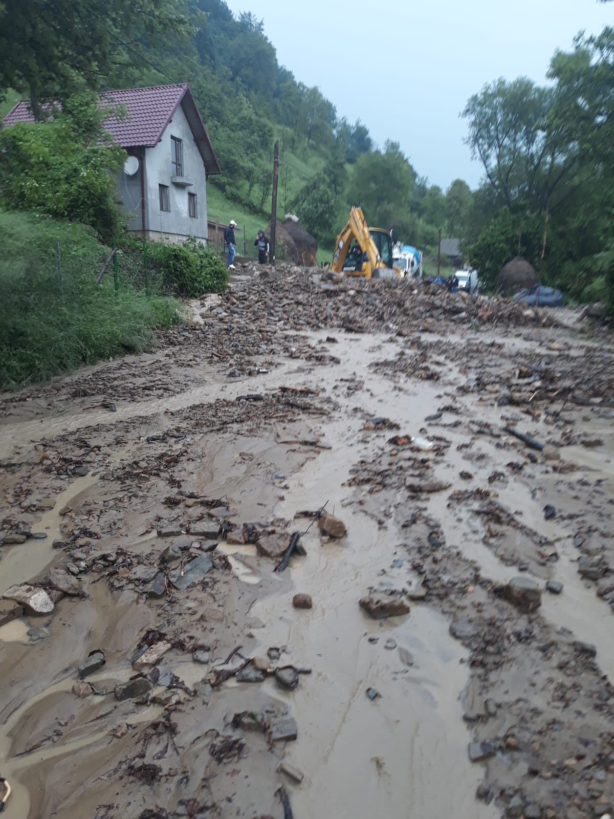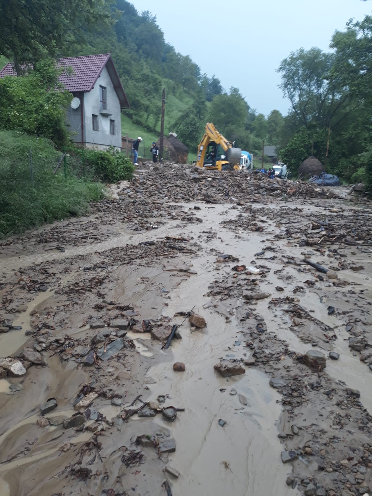 Și drumul județean dintre Dorolea și Cușma este blocat de aluviuni.