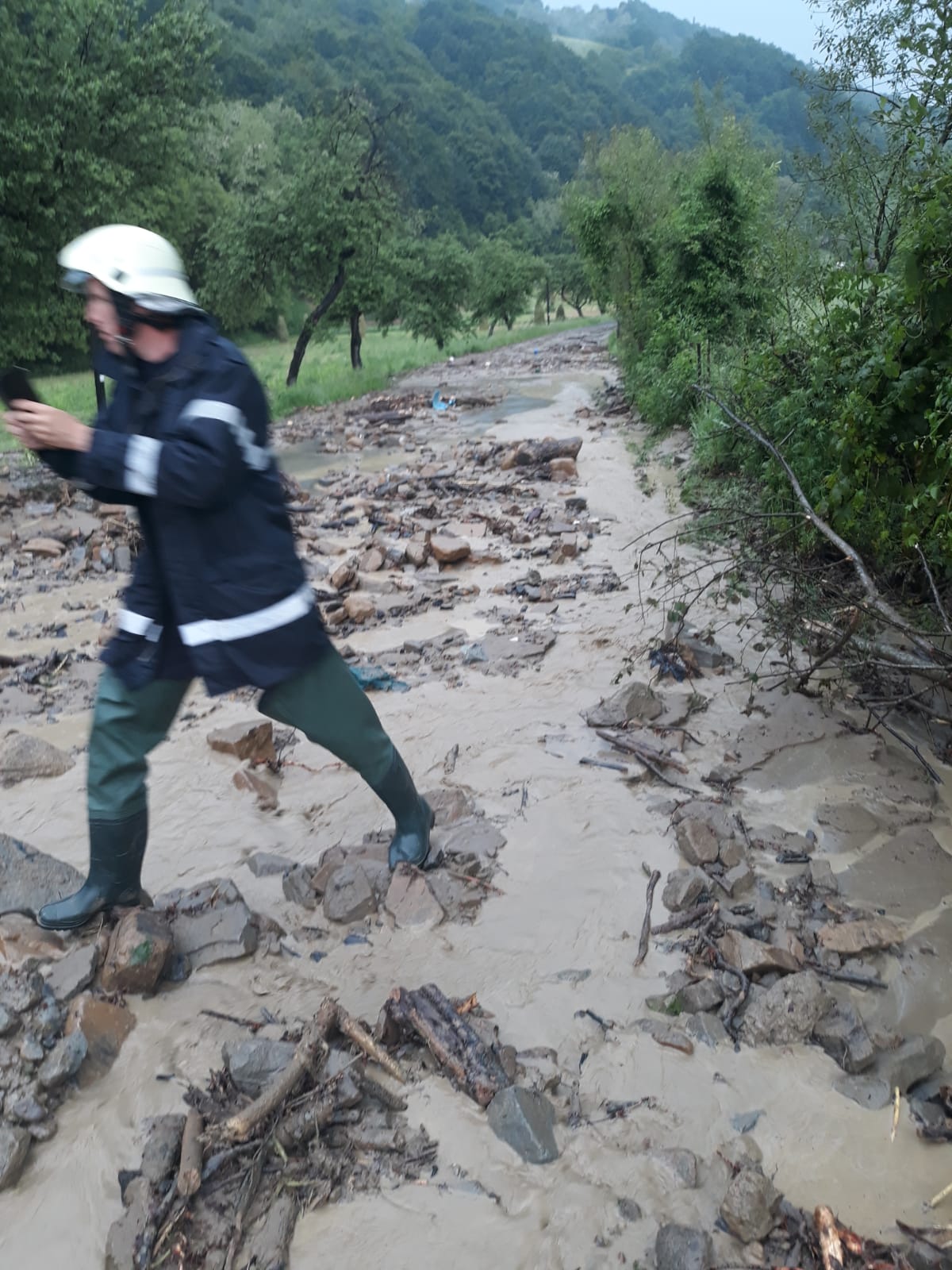„DN17D inundat în loc. Rebrișoara și între Feldru și Ilva Mică. De asemenea și DJ172B Rebra și Parva este blocat de aluviuni. Se lucrează cu buldoexcavatoare pentru deblocare. Pentru remedierea problemelor intervine SVSU  și 2 operatori economici”, informează CJSU BN.