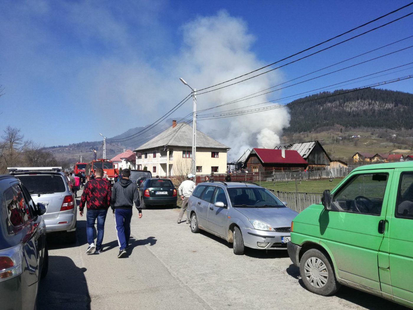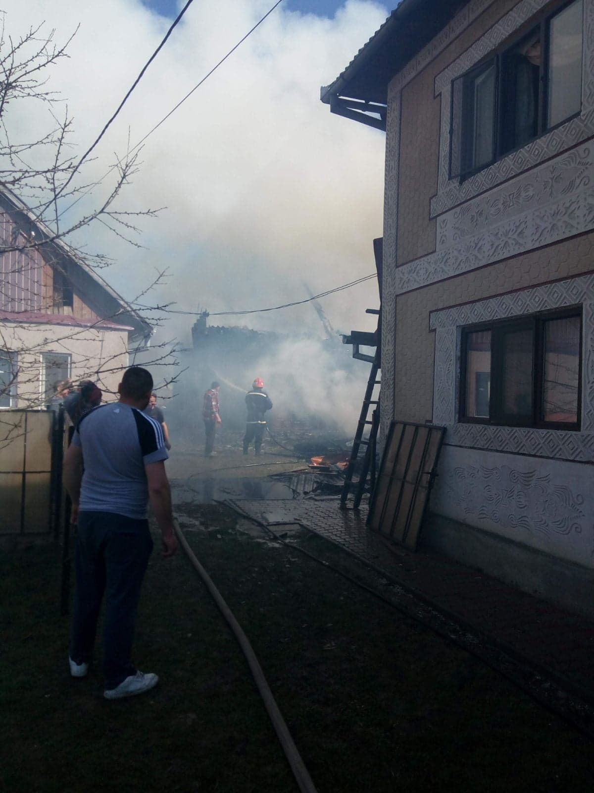 Două familii ce locuiesc într-un duplex, în Lunca Ilvei, trec acum prin momente grele. Aceștia urmăresc cum pompierii se luptă să stingă flăcările ce au cuprins două anexe din gospodăria lor.