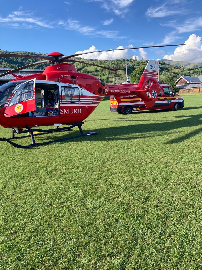 Întrucât starea băiatului era gravă, a fost solicitat un elicopter SMURD, care l-a transportat la o clinică de specialitate din Cluj-Napoca.