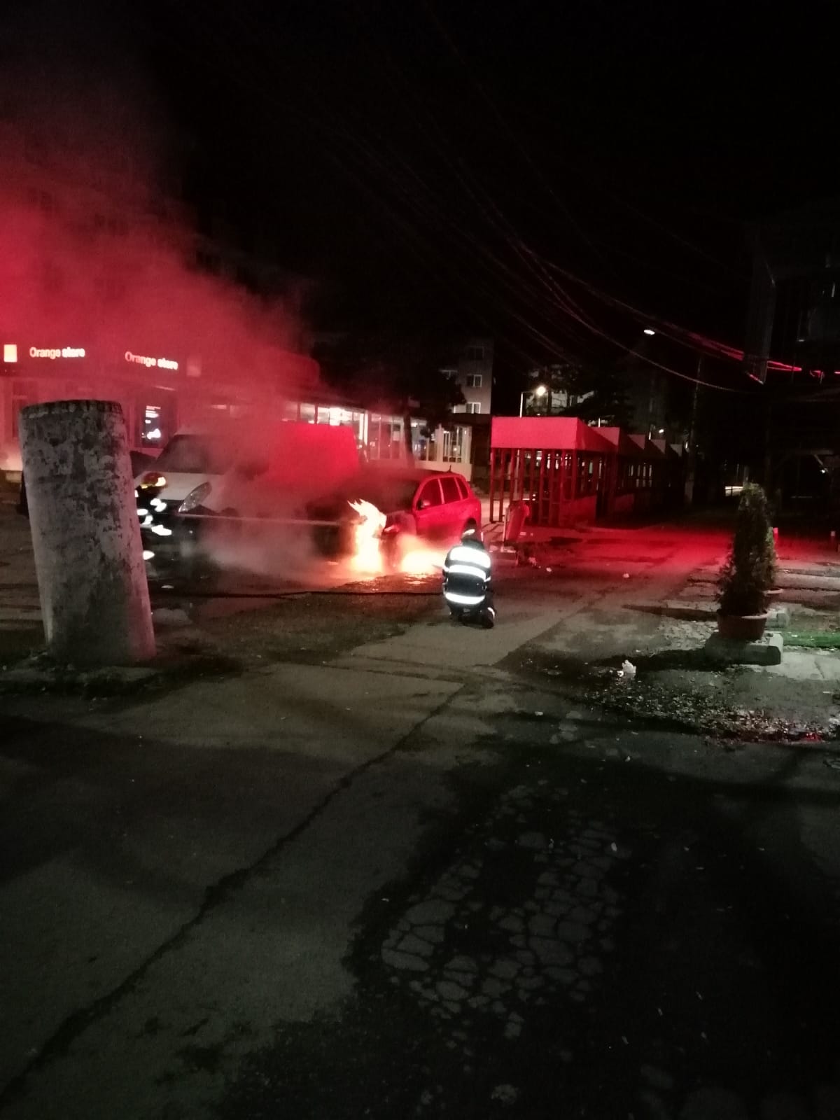 Mașina, un Porche Cayenne din 2010 a ars ca o torță. Deși era parcată lângă o sală de jocuri, iar cei din interior au intervenit cât de repede au putut, pagubele nu au putut fi limitate.
