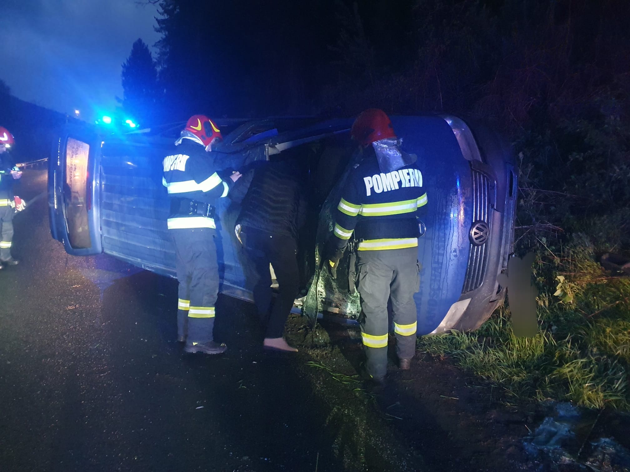 La locul evenimentului, polițiștii au constatat faptul ca o autoutilitară condusă de un bărbat de 61 de ani din Bistrița s-a răsturnat pe partea carosabilă, într-o curbă la dreapta.