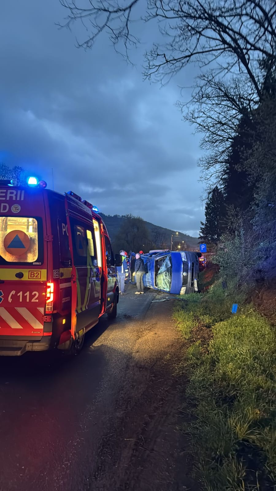 Un echipaj de pompieri, un echipaj de prim ajutor SMURD, un echipaj SAJ si echipajul de terapie intensivă mobilă SMURD intervin la un accident rutier (microbuz răsturnat) în localitatea Liviu Rebreanu. Din primele informații în accident sunt implicate șase persoane, trei dintre acestea ar avea nevoie de îngrijiri medicale. Intervenția este în dinamică” au transmis reprezentanții ISU BN.
