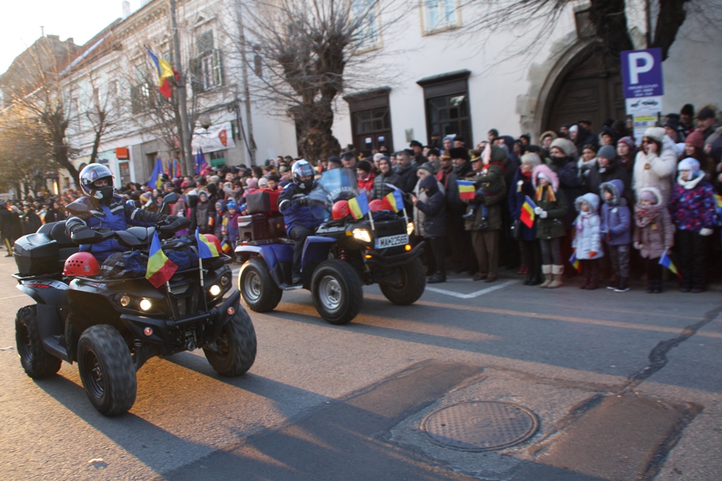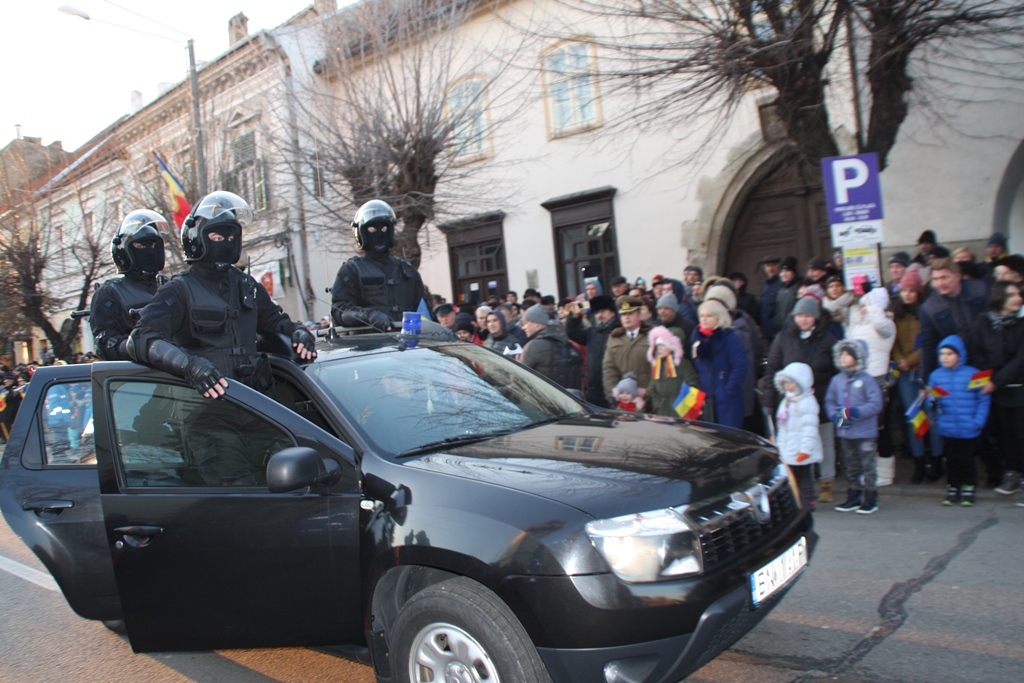 Bistrițenii au asistat astăzi la una dintre cele mai spectaculoase parade pusă în scenă de instituțiile MAI de la Revoluție încoace. Cu această ocazie, Armata România și-a arătat cele mai noi dotări ale sale. Ca un omagiu pentru Centenar, mare parte din autoritățile județene și primari au îmbrăcat costumul popular.