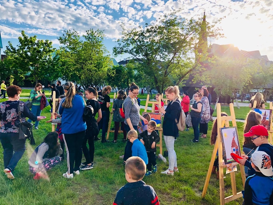 Zeci de copii s-au bucurat de atelierele propuse la Noaptea Muzeelor, de pictură în aer liber alături de artista Georgiana Vrânceanu Cotuțiu de la Shevalet: