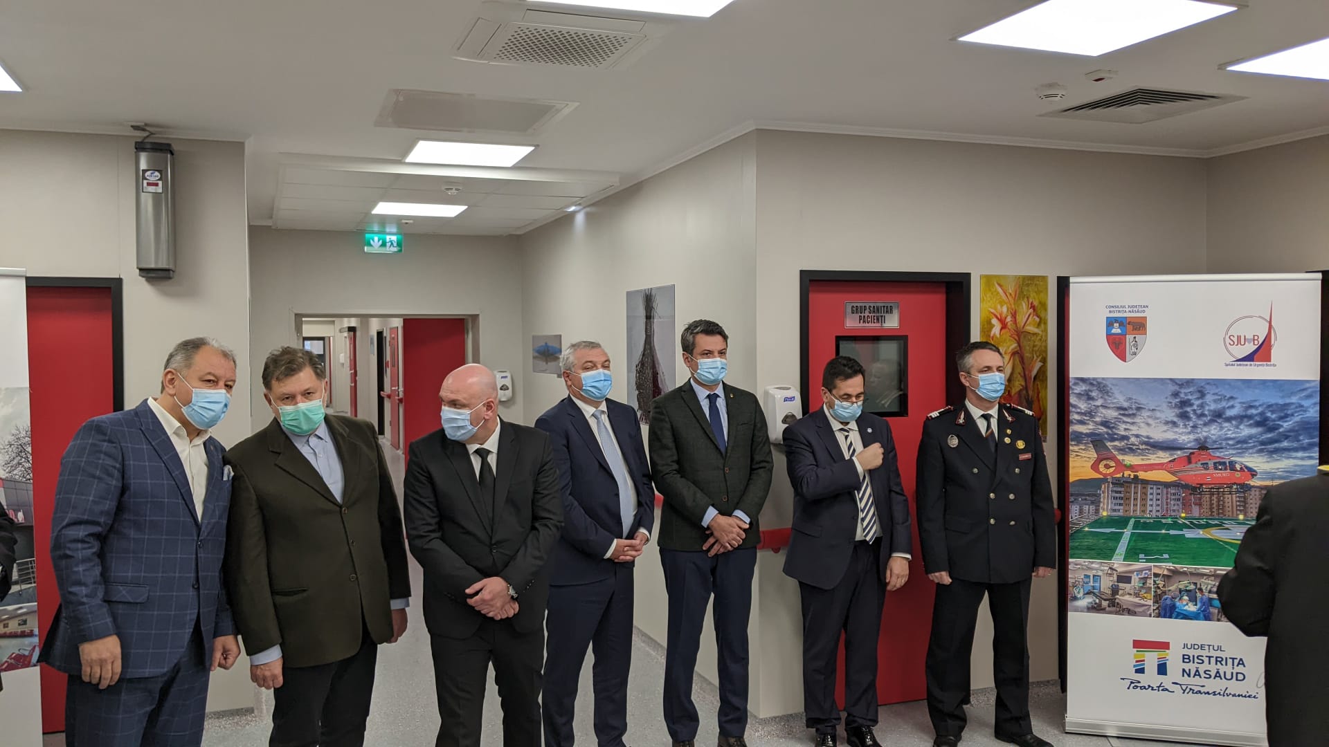 Noua Unitate de Primiri Urgențe a spitalului a fost inaugurată astăzi. Prezenți au fost șefi de instituții, parlamentari de Bistrița-Năsăud, președintele Consiliului Județean Radu Moldovan, dar și doi miniștri: al Sănătății – Alexandru Rafila și al Apărării Naționale – Vasile Dâncu.