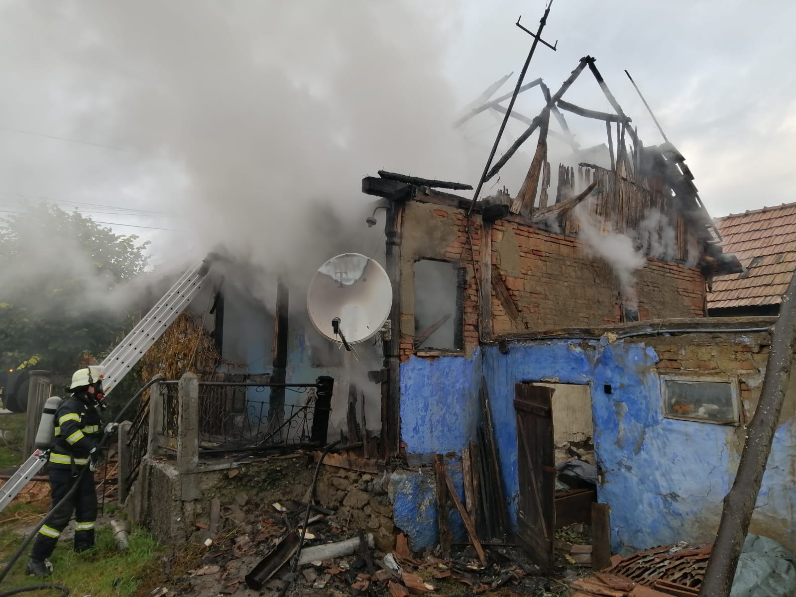 FOTO/VIDEO O bătrânică a murit într-un incendiu care i-a cuprins casa. Locuința i-a fost mistuită de flăcări