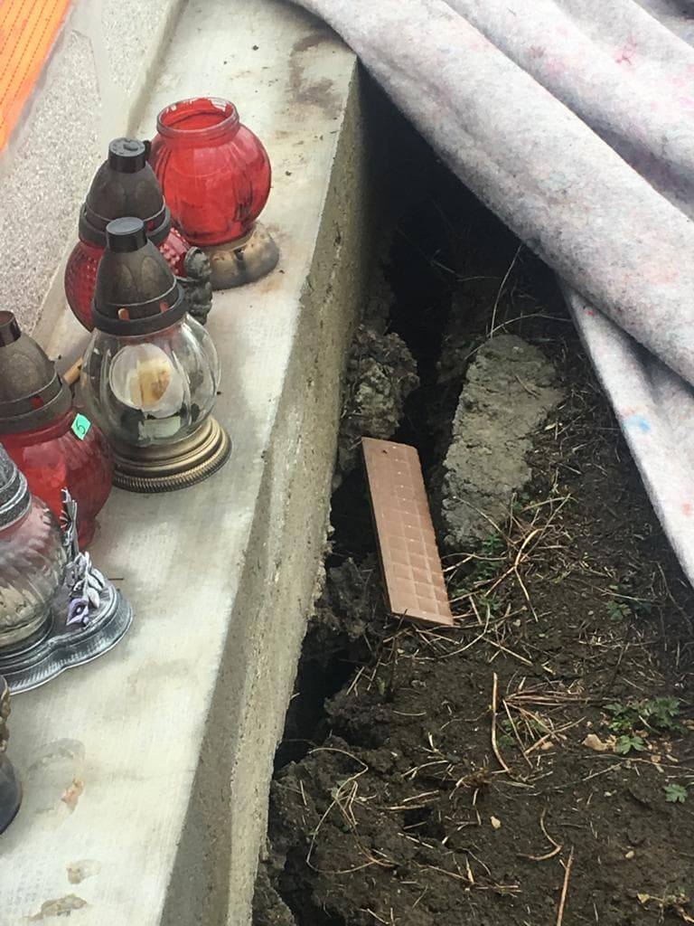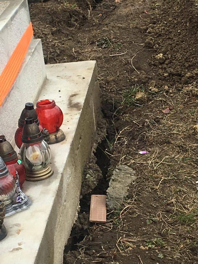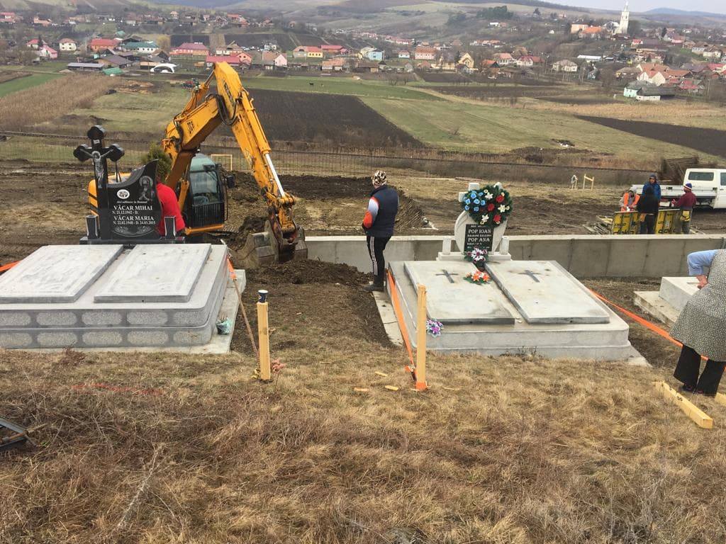 Scandal mare la Sângeorzu Nou! Stația de epurare se construiește fix la poarta cimitirului! Mormintele o iau la vale, așa că au fost legate cu cingători!