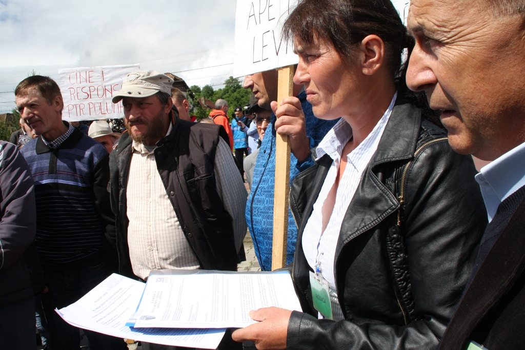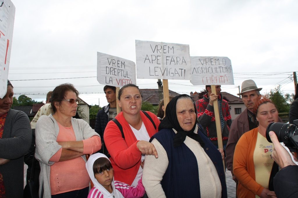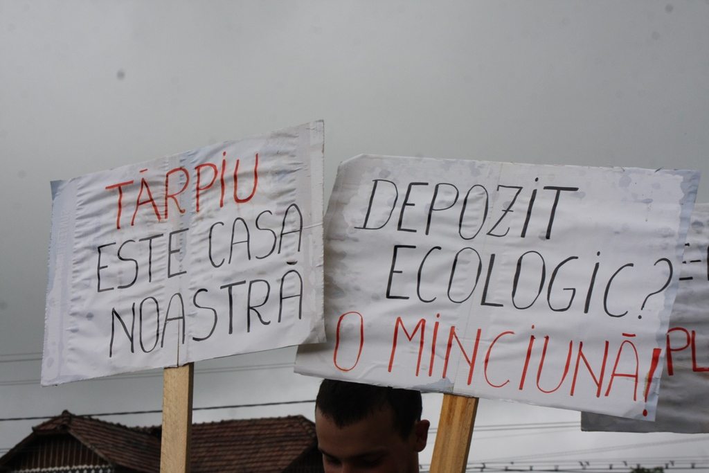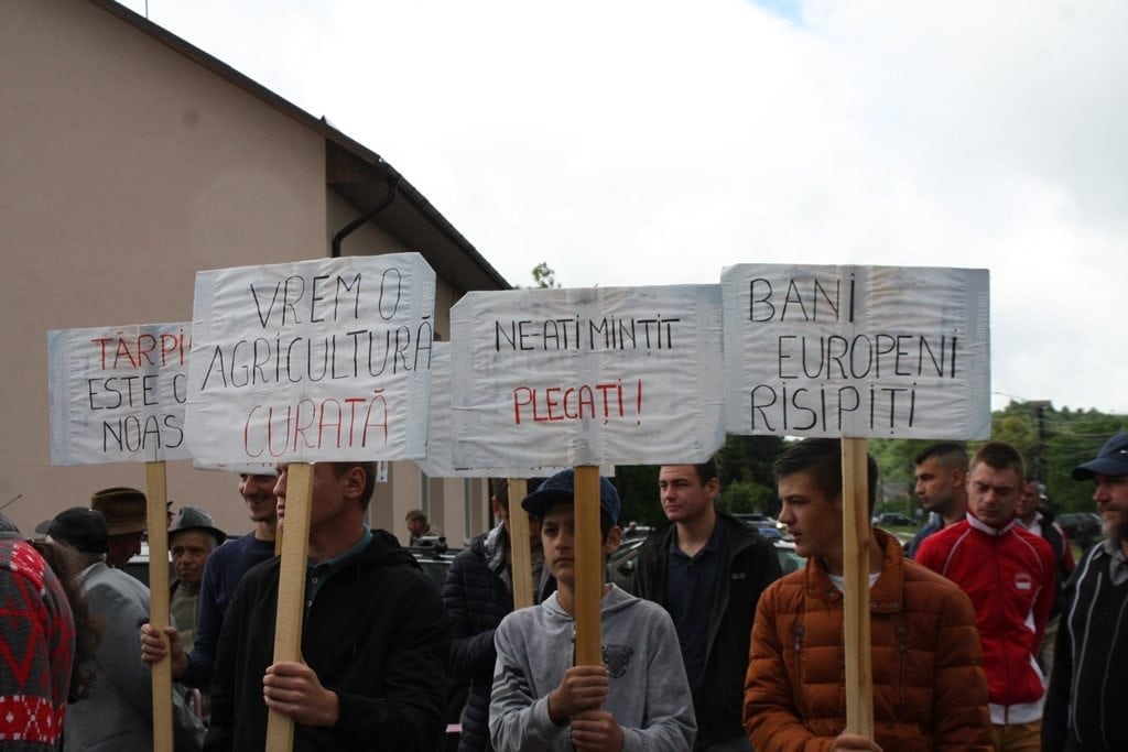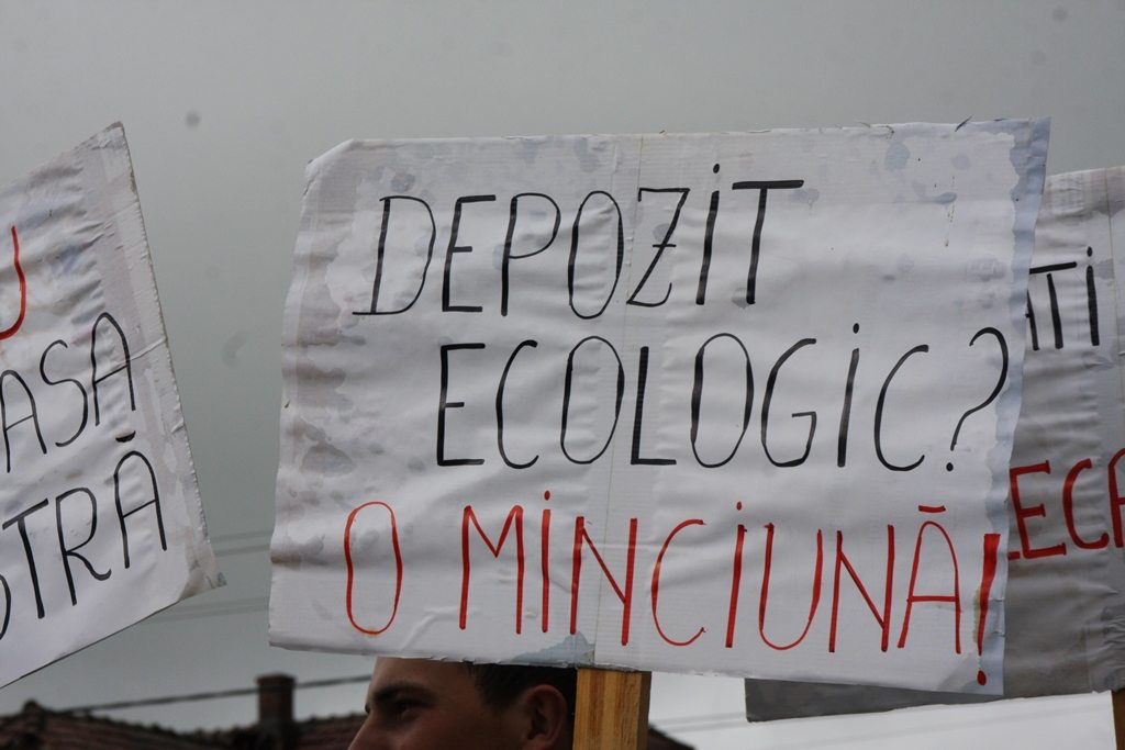 „Depozit ecologic – o minciună!”, „Vrem o agricultură curată”, „bani europeni risipiți”, au fost printre mesajele scrise de oameni pe pancartele.