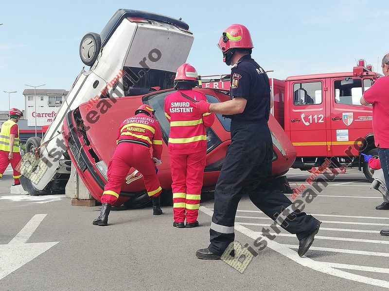 Zeci de pompieri și paramedici și-au dat „întâlnire” azi în parcarea de la Selgros. Aici, pe baza unor scenarii secrete pentru ei, au de acordat primul ajutor și să descarcereze victimele unor accidente. Totul se întâmplă contra cronometru, în cadrul concursului regional al salvatorilor.