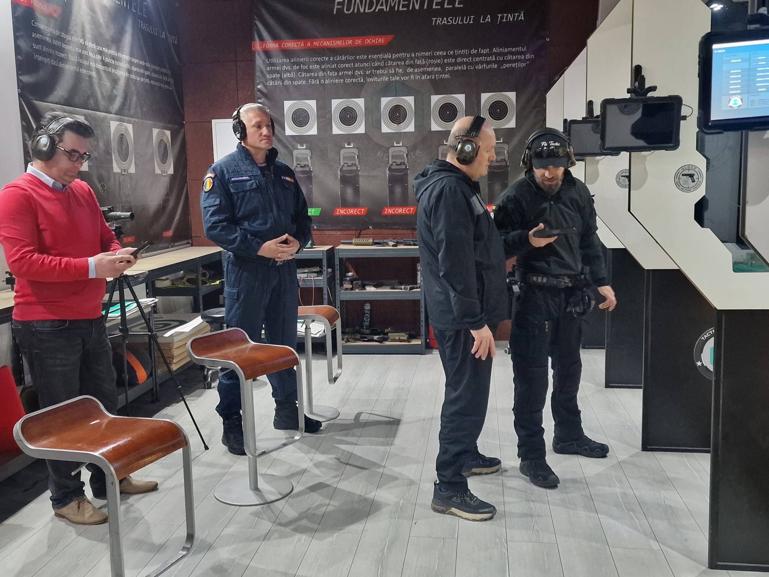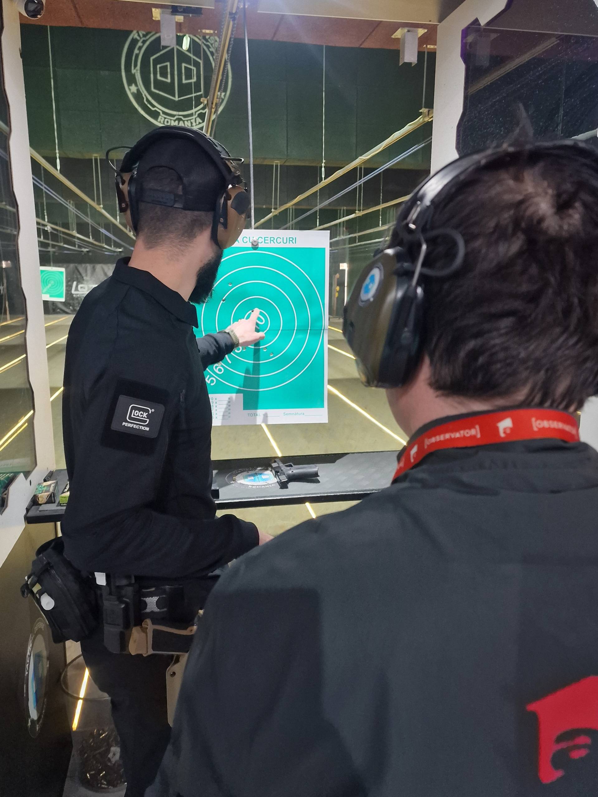 În sala de trageri au intrat șase echipe de câte doi reprezentanți ai presei bistrițene. Profesioniștii de la Poligon Bistrița Tactical Defense au explicat acestora modul în care se mânuiește o armă, importanța poziției corpului, determinarea ochiului dominant, etc., pentru ca totul să se desfășoare în siguranță.