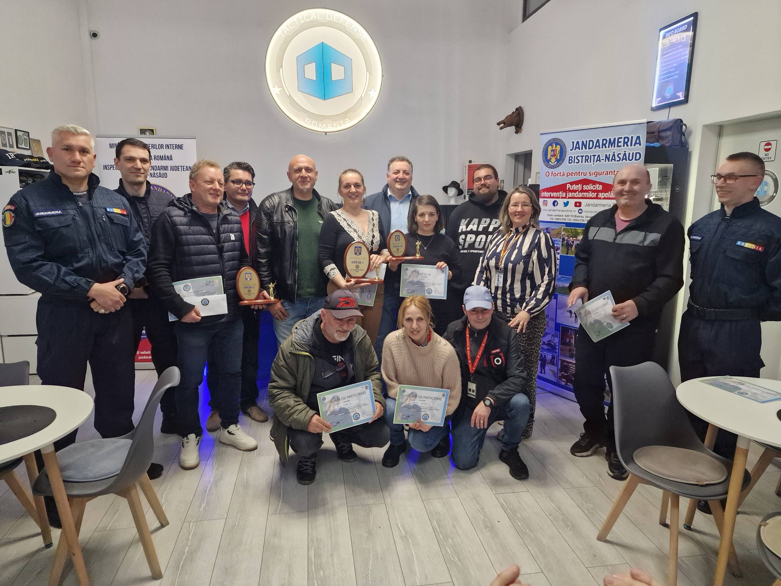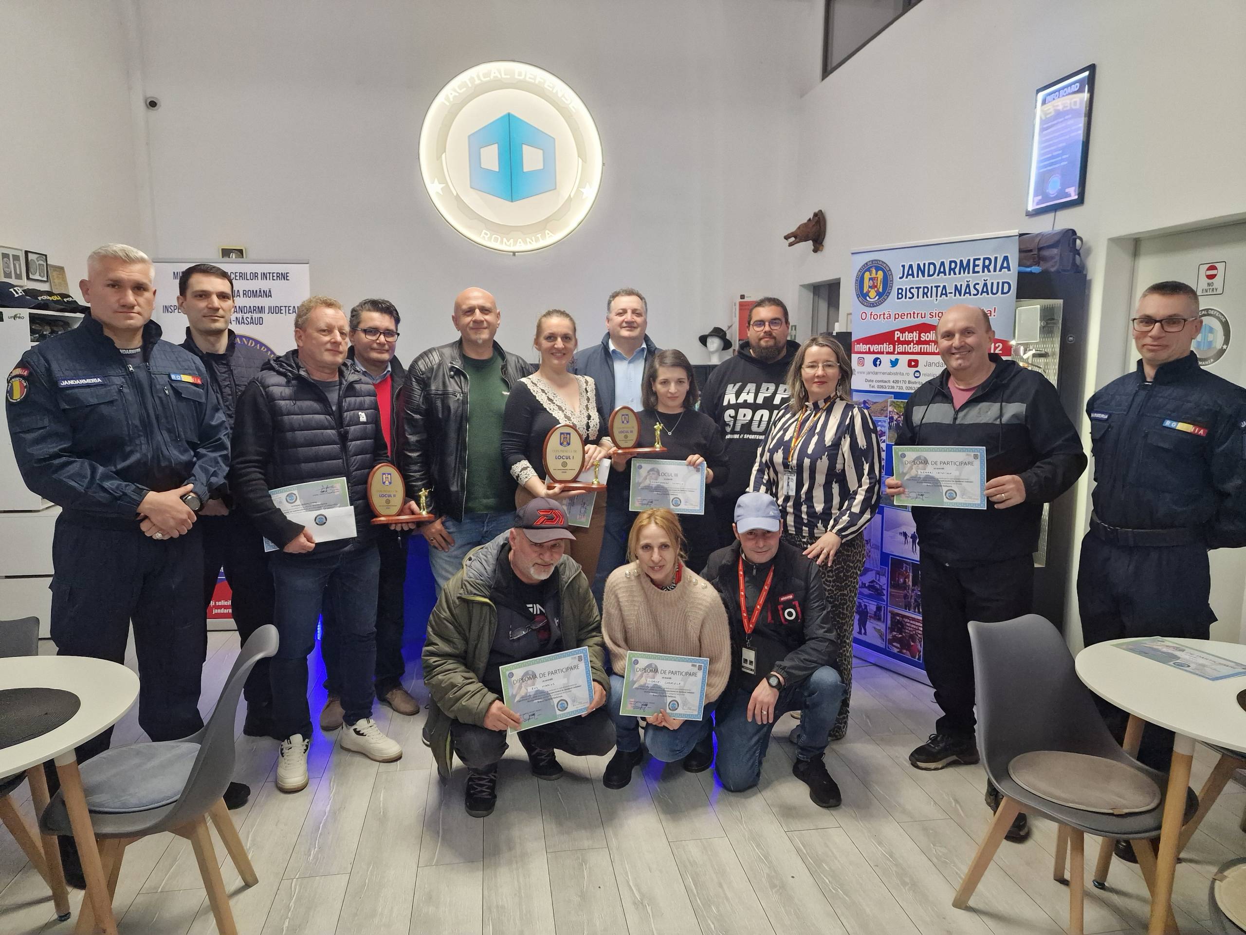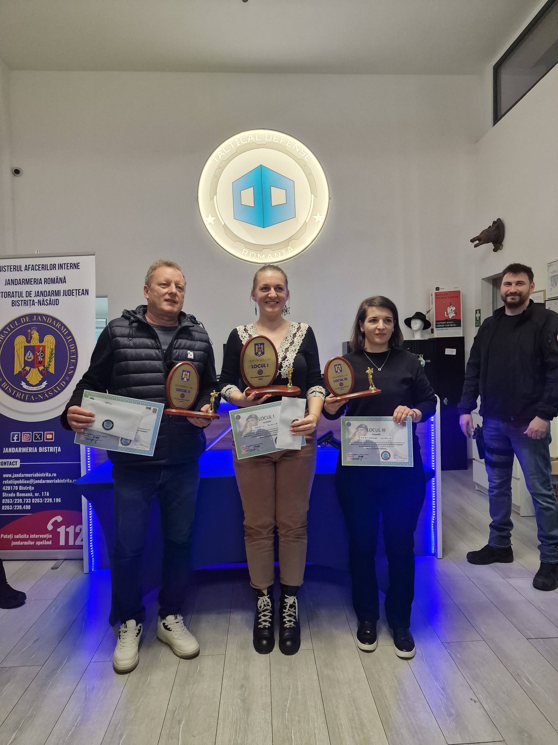 Cei trei au primit câte un trofeu și o diplomă – din partea IJJ BN – și câte un voucher din partea Poligon Bistrița Tactical Defense.