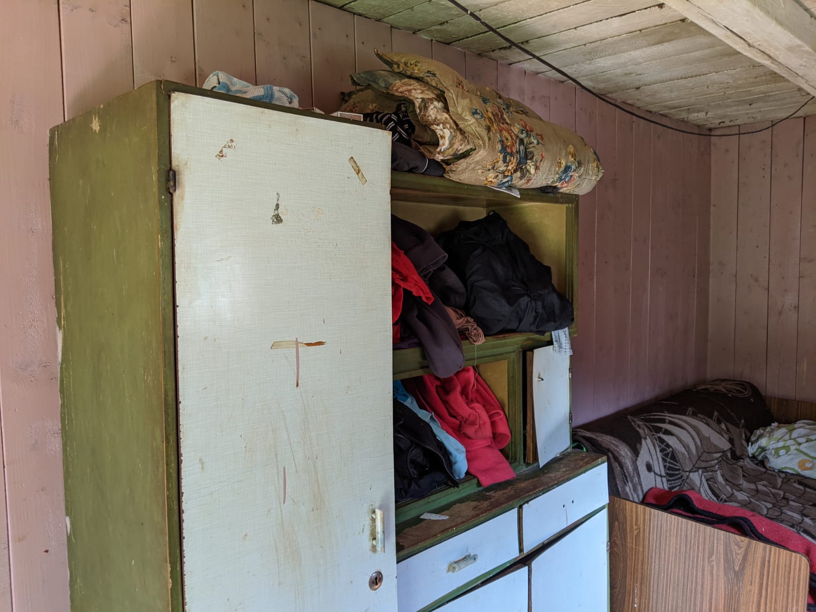 Femeia de 38 de ani se află în grija familii din Tureac (comuna Tiha Bârgăului) încă din anul 2009 și tot de atunci își duce veacul în această baracă anexată casei, care, în trecut era o magazie.