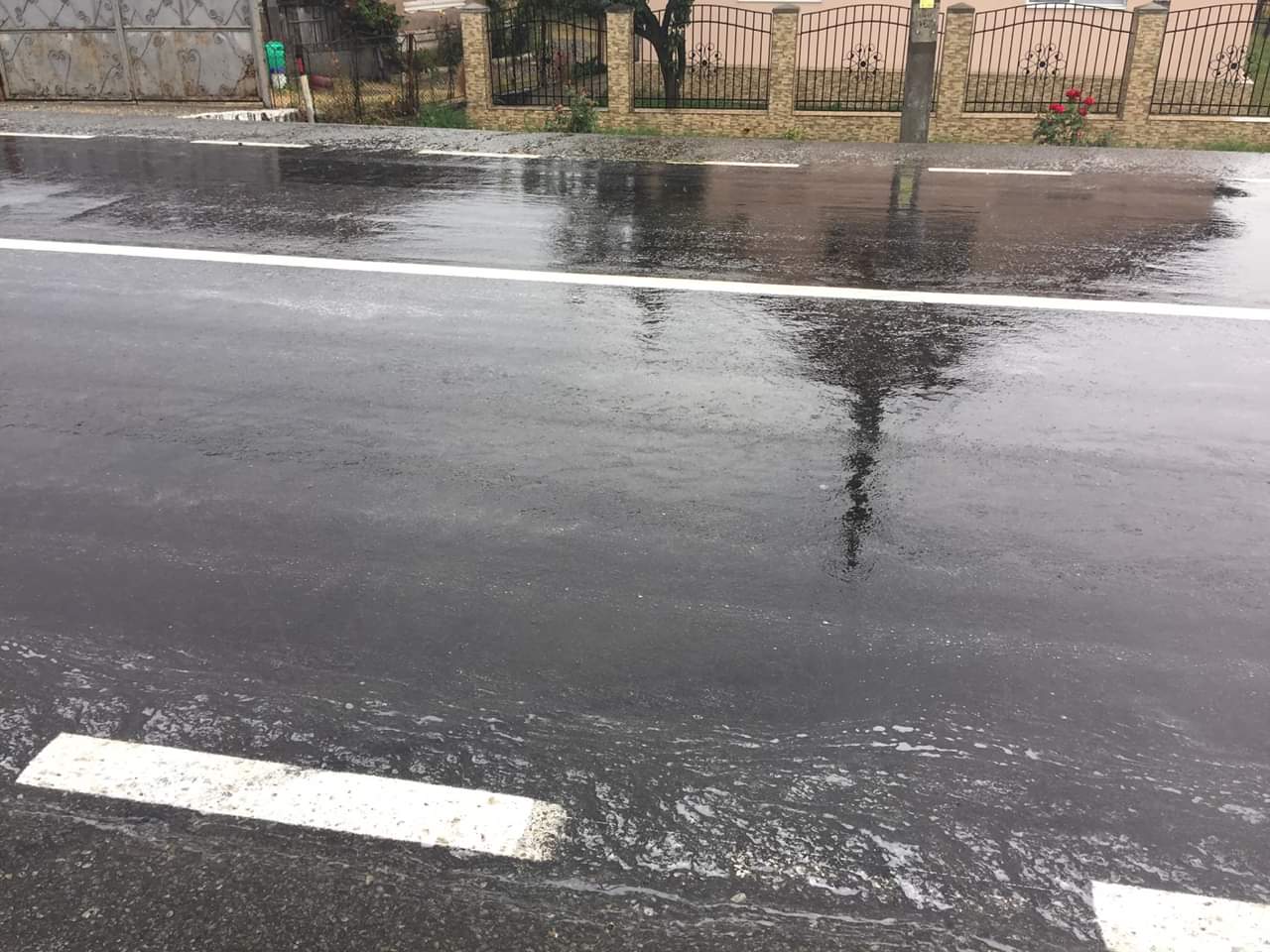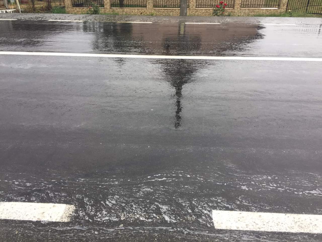 Uite linia continuă, nu mai e linia continuă!  Cam aşa şi pe DN17 în localitatea Livezile. După multă vreme azi a plouat pentru prima dată, deşi codurile galbene de vremea rea emise pentru întreg judeţul au fost nenumărate.