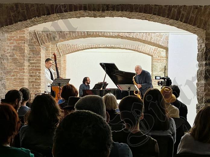 Legendara figură a pianistului și compozitorului Mircea Tiberian a luminat fantomatic, ieri seară, galeria Palatului Culturii din Bistrița. Trei dintre prietenii săi apropiați – Nicolas Simion, alături de pianistul Toma Dumitriu și contrabasistul Răzvan Cojanu – au susținut un tulburător concert, reamintindu-ne câteva din cele mai frumoase și tandre compoziții semnate de Mircea Tiberian.