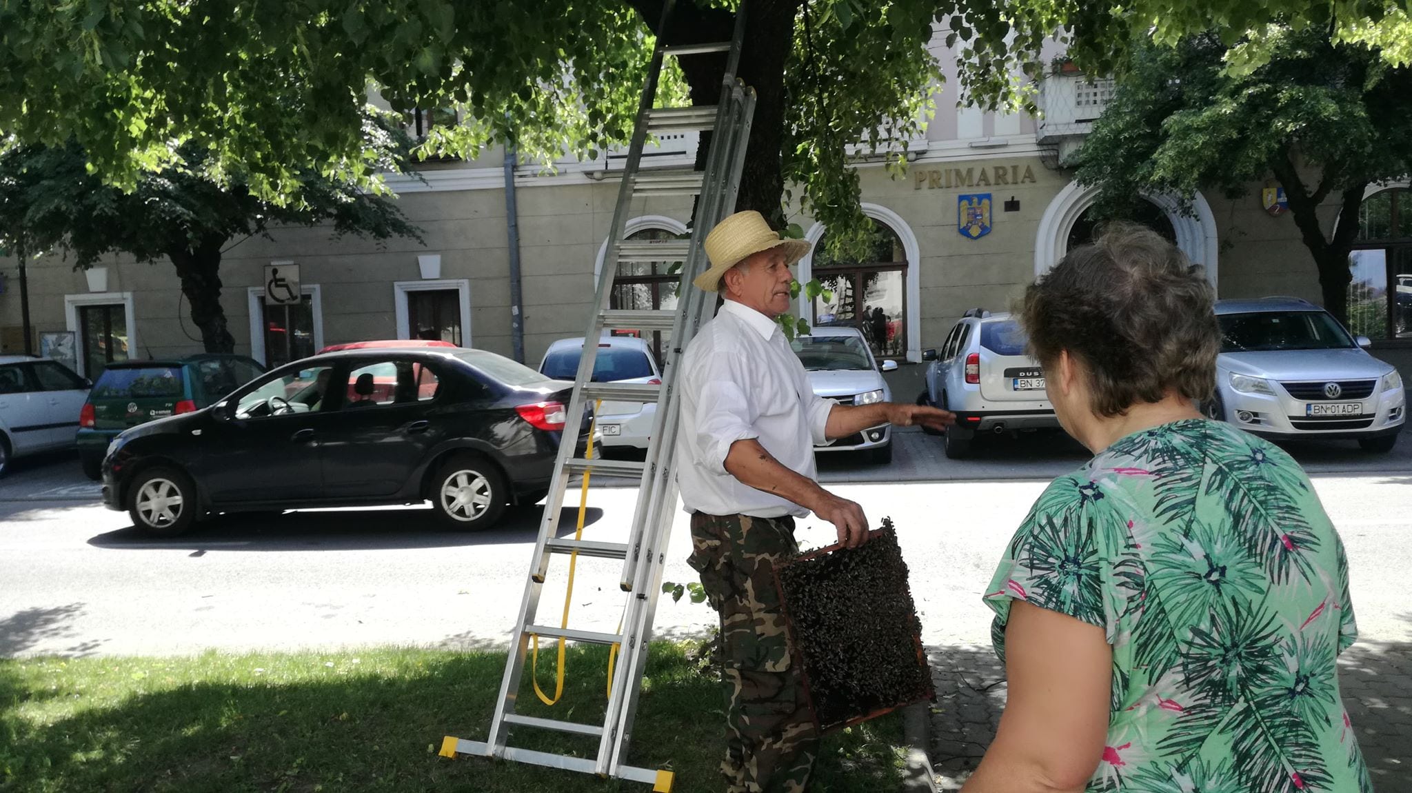 Albinele erau într-un arbore poziționat chiar în fața Primăriei Municipiului Bistrița.