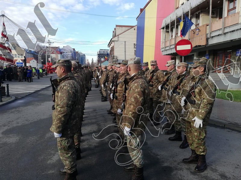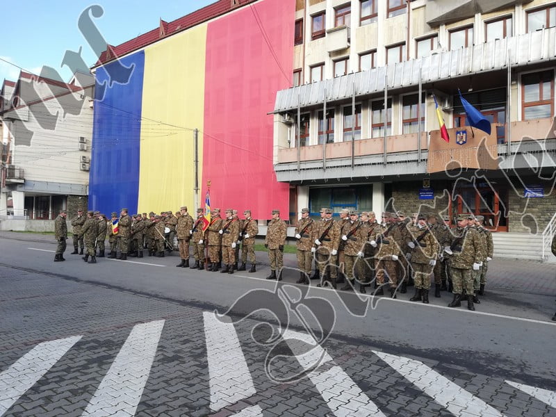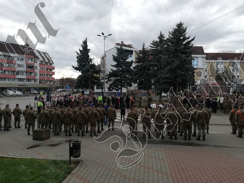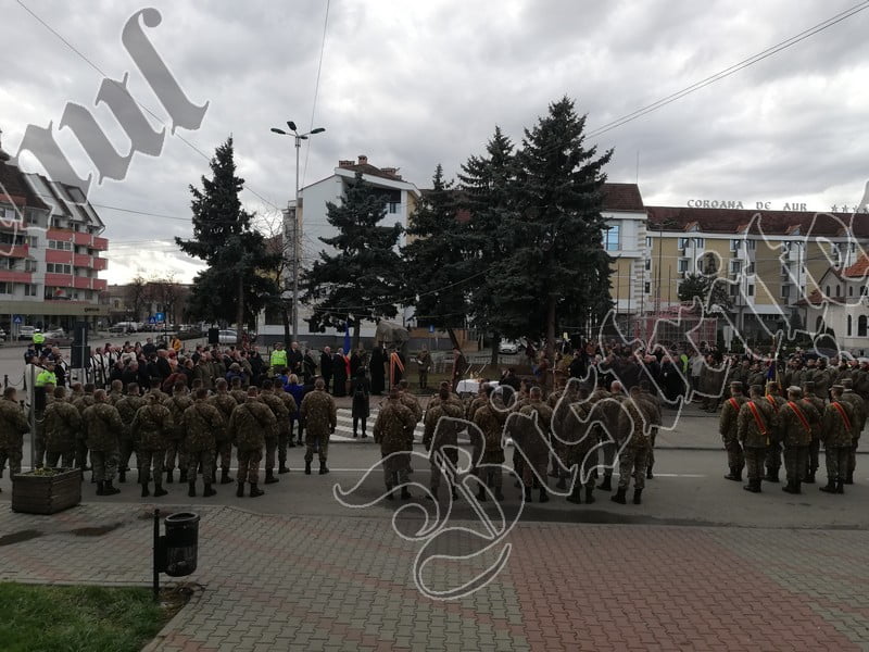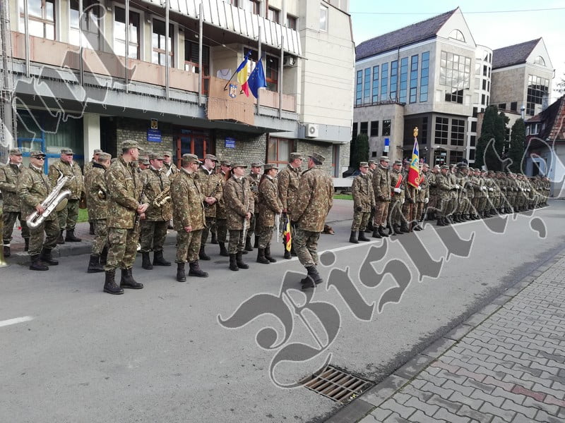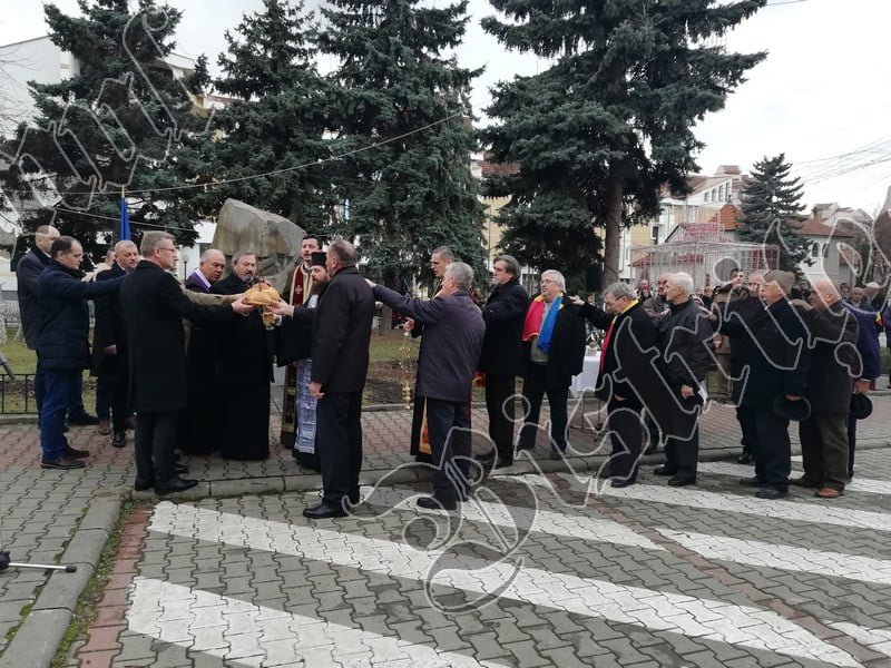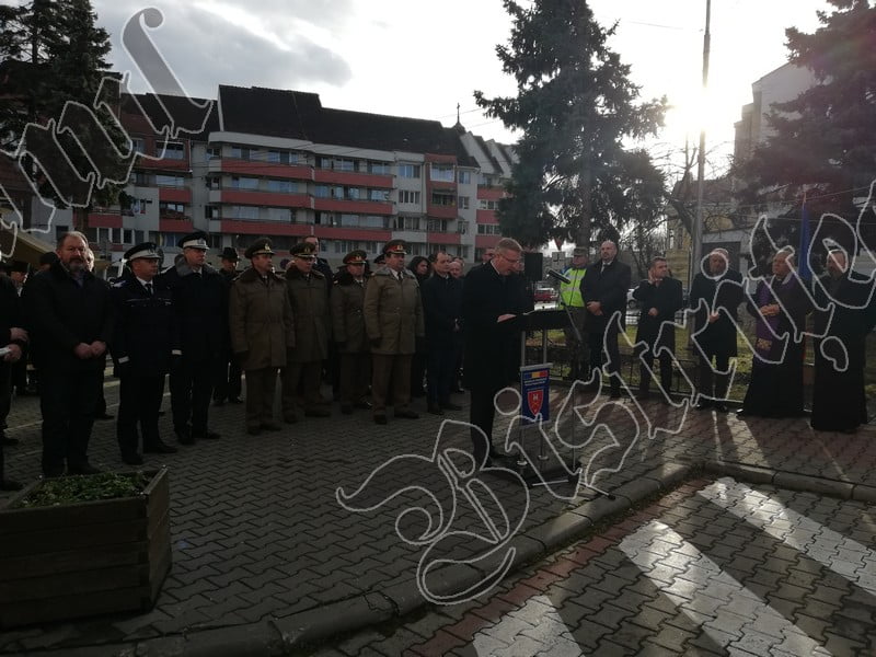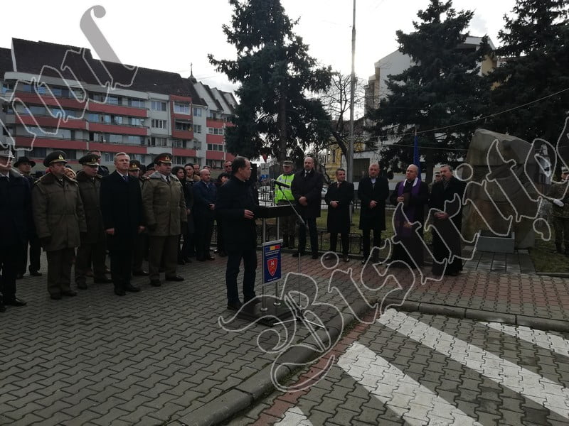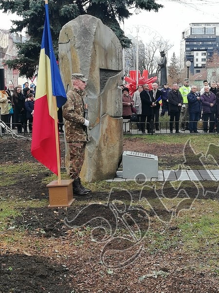 Un nou bloc de piatră sculptat a apărut în fața palatului Administrativ. Monumentul Revoluției a fost develit azi în fața oficialităților, a militarilor și a câtorva zeci de bistrițeni.